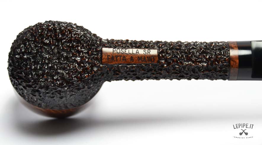 Pipa Posella - Semi Rusticata n. 48 SR - Stand-Up Bocchino in metacrilato Senza filtro Semi rusticata Senza elaborazione Diametro Interno: 21 mm. Diametro Esterno: 37 mm. Lunghezza: 132 mm. Altezza: 40 mm. Peso: 35 gr. Profondità: 32 mm.
