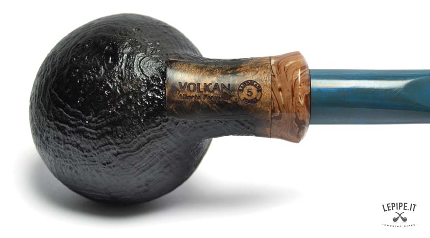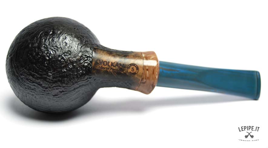 Pipa Volkan - n. 145 Grado 5 Bocchino in cumberland Senza filtro Sabbiata Con altra elaborazione Diametro Interno: 21 mm. Diametro Esterno: 54 mm. Lunghezza: 148 mm. Altezza: 42 mm. Peso: 77 gr. Profondità: 33 mm.