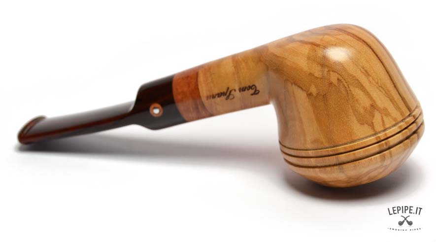 Questa straordinaria pipa artigianale Tom Spanu rappresenta l’essenza della tradizione ebanistica italiana, utilizzando il pregiato legno di ulivo, caratterizzato dalle sue affascinanti venature dorate e dal calore visivo unico. La forma della pipa, ben bilanciata, evidenzia una lavorazione meticolosa, unita alla scelta di materiali naturali che garantiscono qualità e bellezza senza tempo. Il fornello, dalla forma Bulldog e impreziosito da doppie scanalature, si distingue per la perfetta proporzione e per la superficie liscia che esalta le naturali sfumature del legno di ulivo. Il bocchino, realizzato in metacrilato scuro, si armonizza elegantemente con il corpo, offrendo un contrasto sofisticato e una sensazione di comfort durante l’uso. Il nome "Tom Spanu" inciso sulla parte laterale conferma l’autenticità di un pezzo unico nel suo genere, frutto di una sapiente lavorazione artigianale. La pipa è stata realizzata interamente in Sardegna, unendo l’esperienza e la passione tramandata nel tempo, con un design che celebra il valore delle materie prime naturali. Ideale per chi cerca una pipa che coniughi estetica e funzionalità, questa creazione in legno di ulivo offre un’esperienza di fumata unica e un pezzo d’arte da ammirare e custodire.