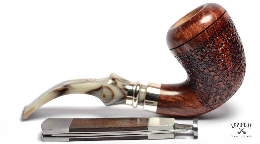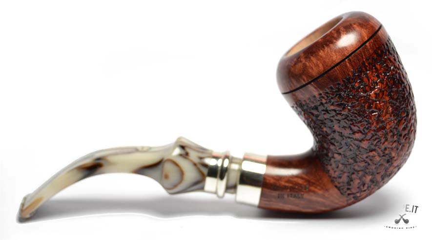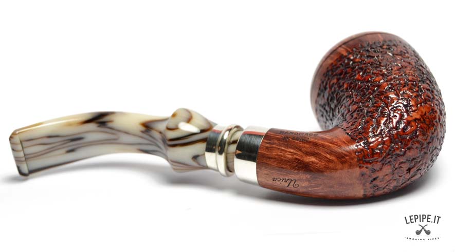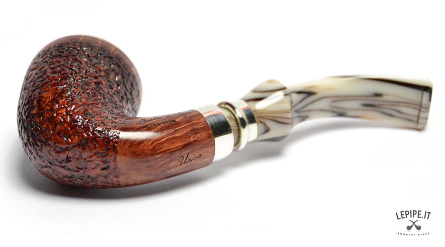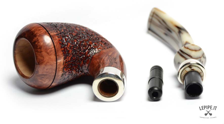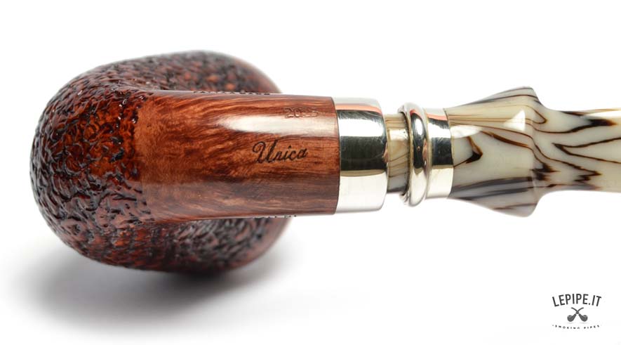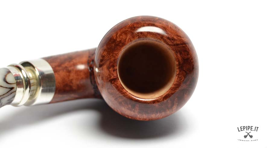 Il bocchino in metacrilato avorio, con le sue delicate venature scure, aggiunge un tocco di classe e rende ogni pezzo unico. Un modello perfetto per chi desidera una pipa dal design esclusivo, capace di unire estetica, comfort e l’inconfondibile qualità italiana.