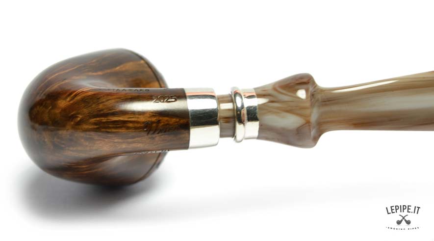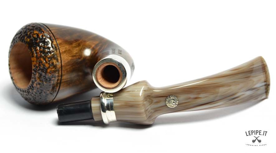 Il bocchino in metacrilato, dalle affascinanti sfumature avorio, aggiunge un tocco di raffinatezza e garantisce una fumata piacevole. Questa versione è senza filtro, offrendo un’esperienza pura e diretta, proprio come si addice a un autentico cultore del fumo lento.