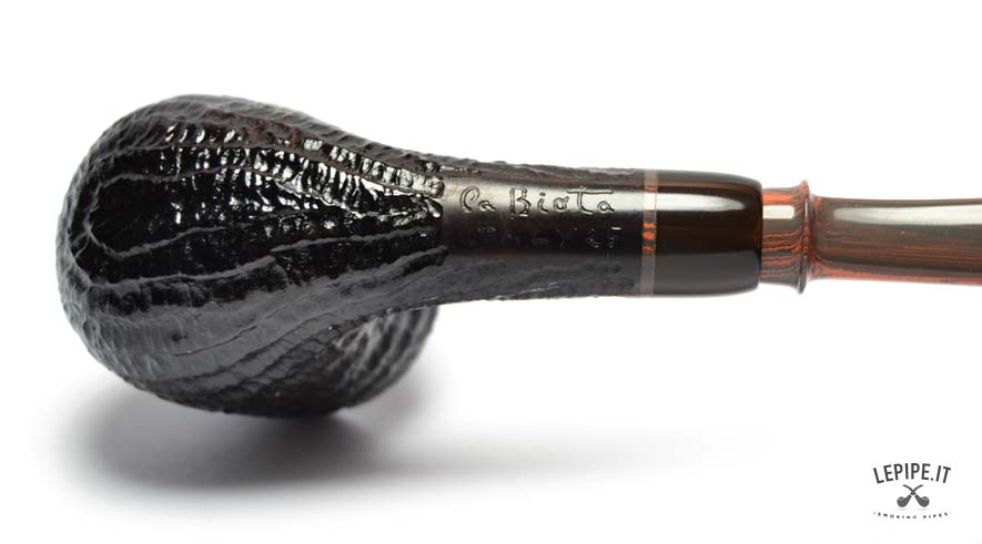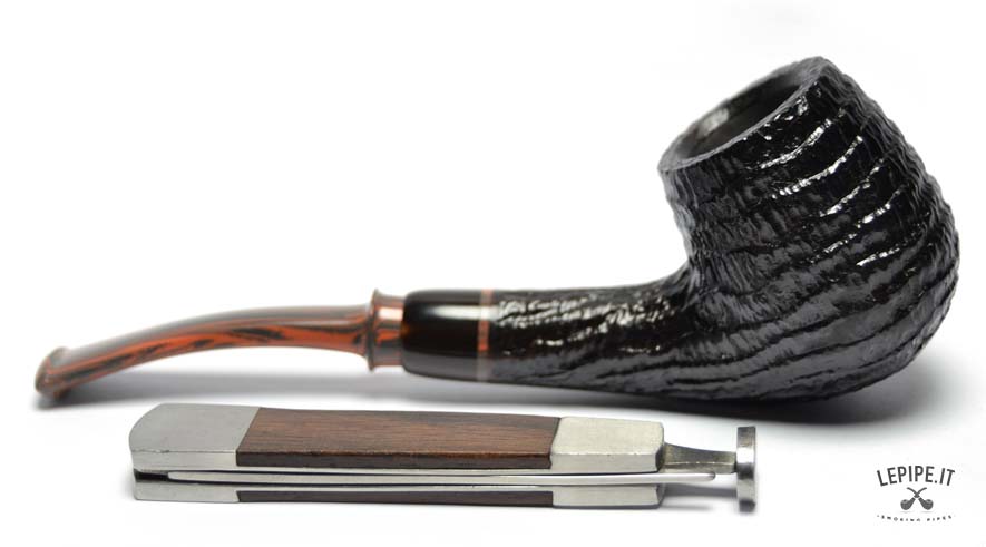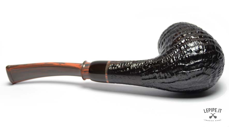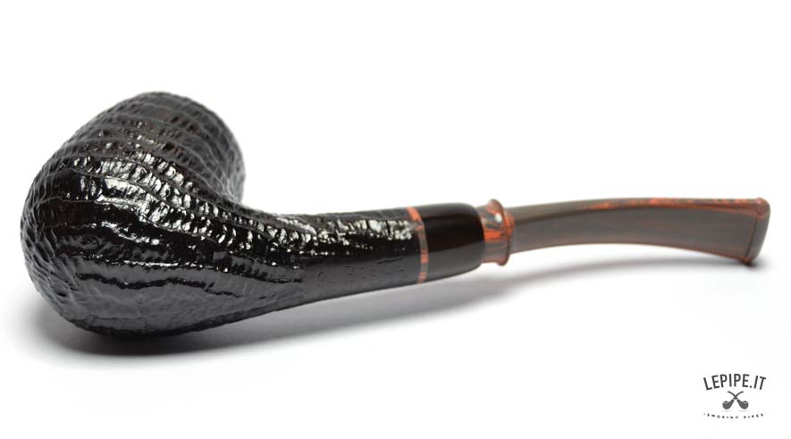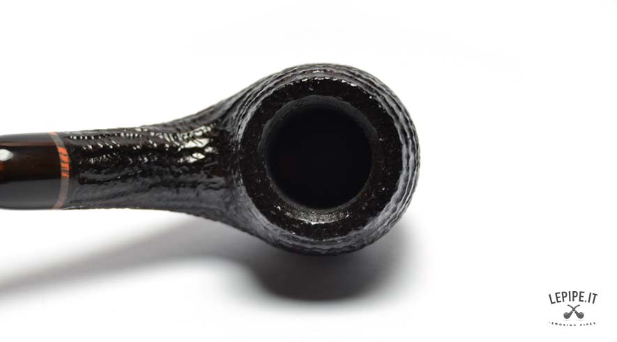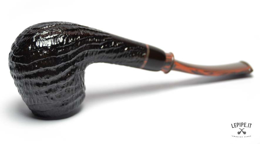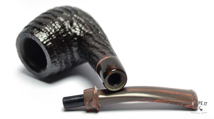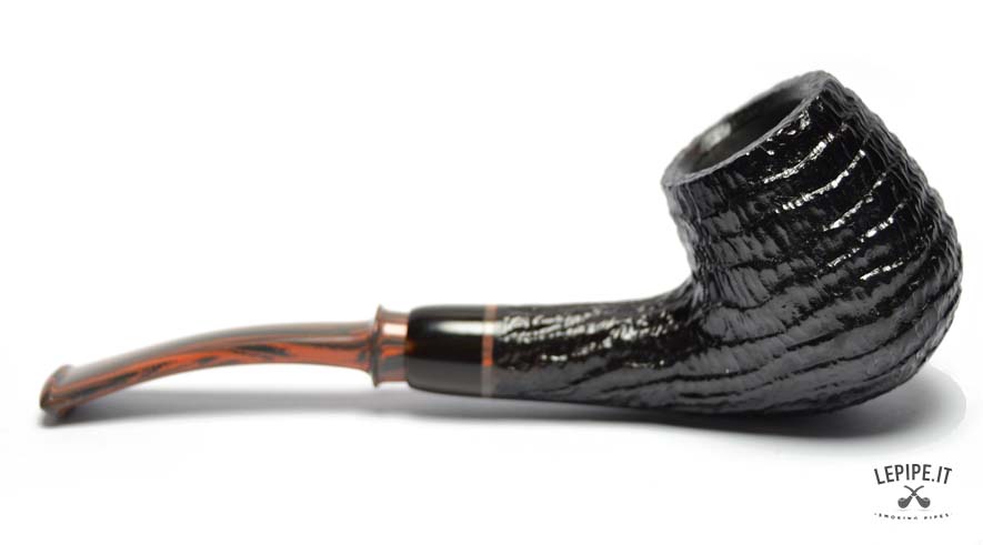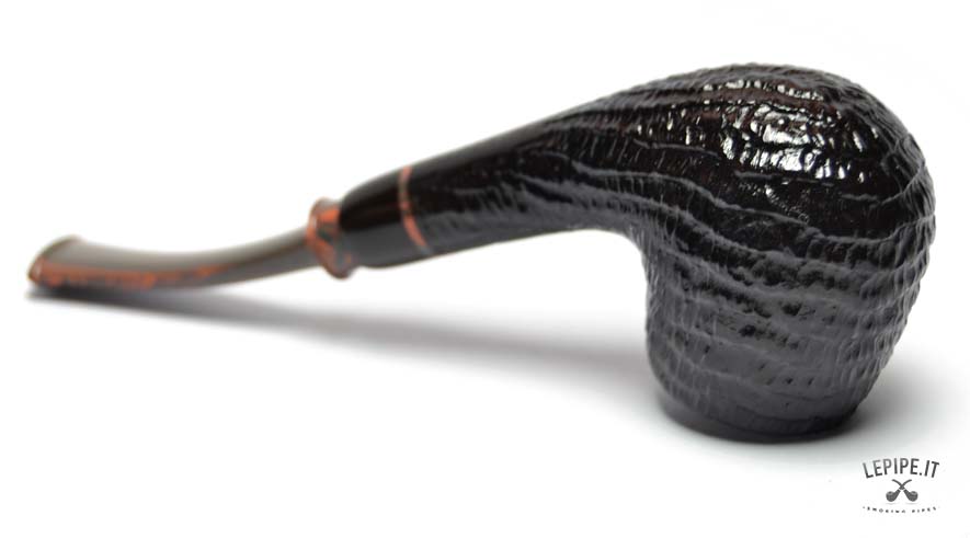 Il fornello presenta una splendida finitura sabbiata, che mette in risalto le venature naturali della radica e dona alla pipa un carattere deciso e sofisticato. La texture profonda e marcata aggiunge un tocco di personalità, mentre la colorazione nera lucida conferisce eleganza e versatilità.