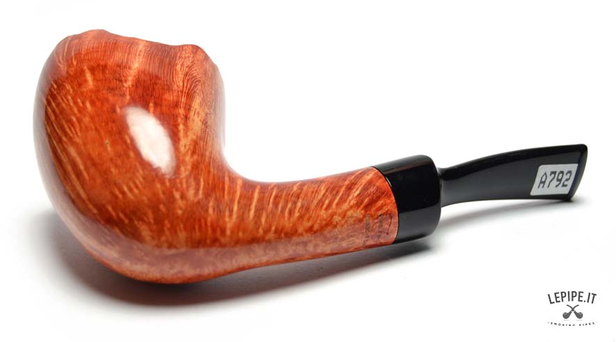 Questa raffinata pipa artigianale si distingue per la sua forma libera e l’eccellente qualità della radica, lavorata per esaltare le sue venature fiammeggianti. La finitura liscia e lucida dona profondità e calore al legno, mentre il bordo rusticato aggiunge un tocco di naturale eleganza.
