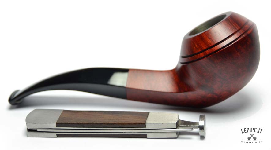 Questa pipa dal classico shape Rhodesian si distingue per la sua eleganza essenziale e la praticità d’uso. Il design compatto e la caratteristica linea doppia incisa sulla testa del fornello le conferiscono un aspetto raffinato e distintivo.