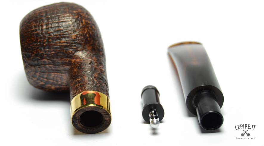Questa Prince appartiene alla serie Churchill di Chacom e presenta una finitura sabbiata di colore marrone scuro. Il bocchino in metacrilato è decorato con un elegante anello in metallo dorato, mentre la sede per filtro da 9 mm offre la possibilità di personalizzare l'esperienza di fumata.