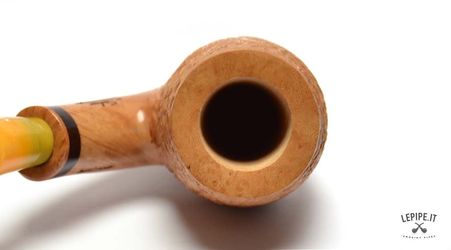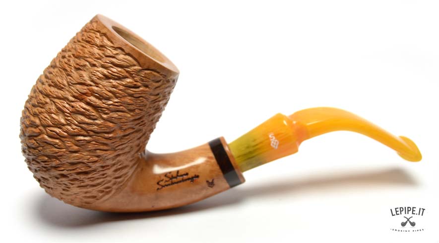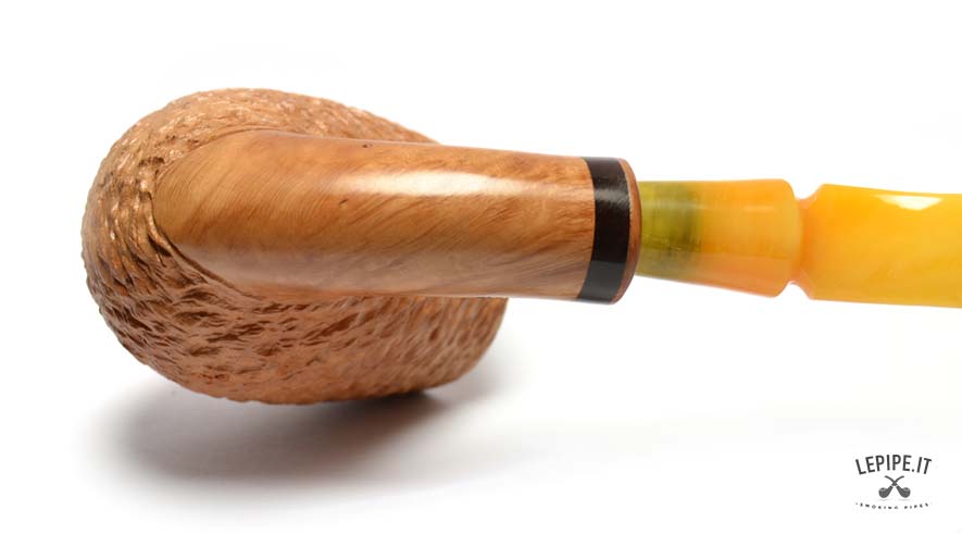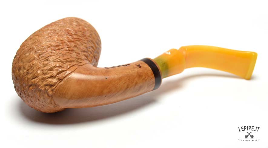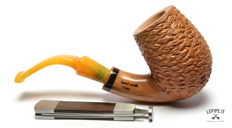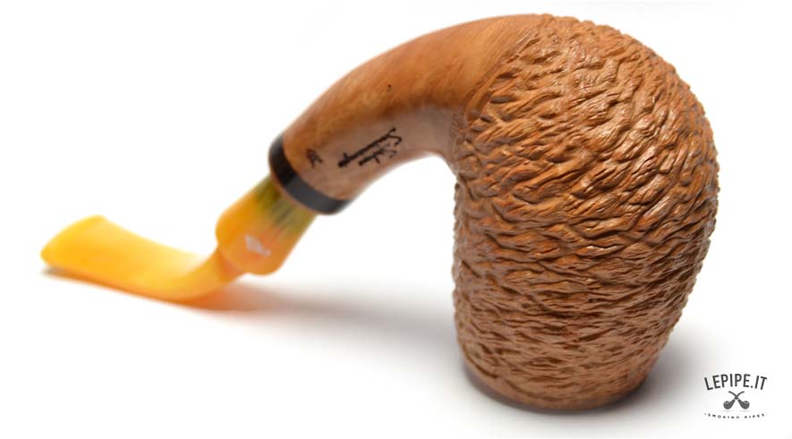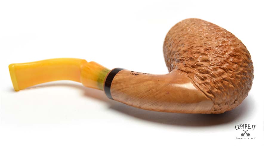 La finitura rusticata naturale dona alla pipa un carattere autentico e una texture unica, esaltando la bellezza della radica. Questo tipo di lavorazione non solo conferisce un aspetto distintivo, ma migliora anche la presa, rendendo la pipa confortevole da tenere in mano.