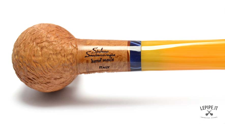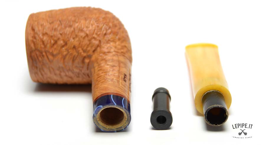 Il bocchino in metacrilato, dal caratteristico colore ambrato con dettagli blu, aggiunge un tocco di vivacità al design. La sua forma dritta garantisce un’aspirazione fluida e confortevole.