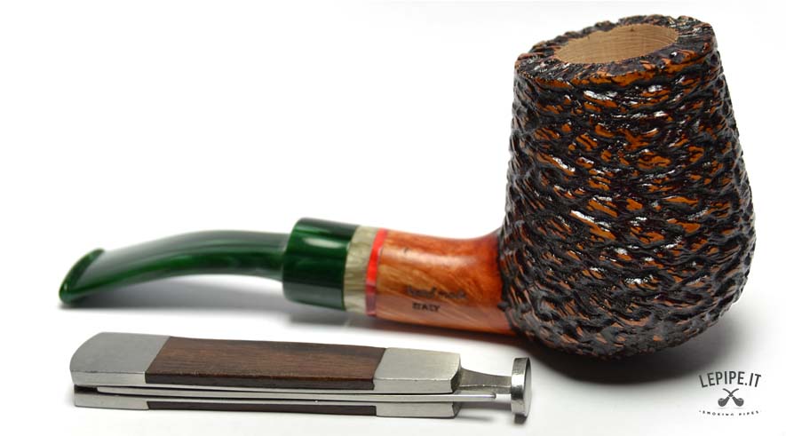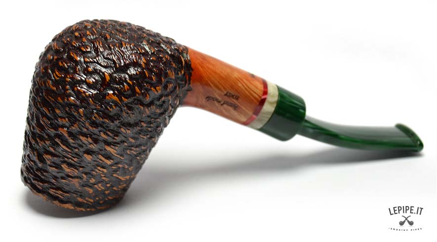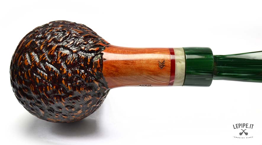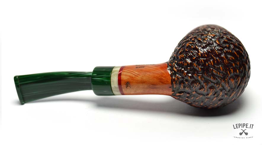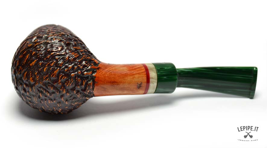 Il bocchino in metacrilato verde marmorizzato, unito a una raffinata ghiera bicolore, aggiunge un tocco di eleganza e originalità. Grazie alla seduta per filtro da 9 mm, la pipa permette un tiro più asciutto e personalizzabile.