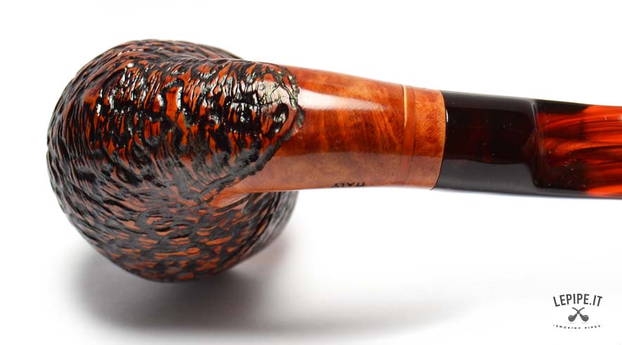 Questa pipa è realizzata da Stefano Santambrogio e presenta una forma Curva con una finitura rustica che conferisce alla radica una texture unica e interessante. Il bocchino in metacrilato bordeaux aggiunge un tocco elegante, completando il design della pipa. La pipa è priva di filtro, permettendo un'esperienza di fumata più naturale.