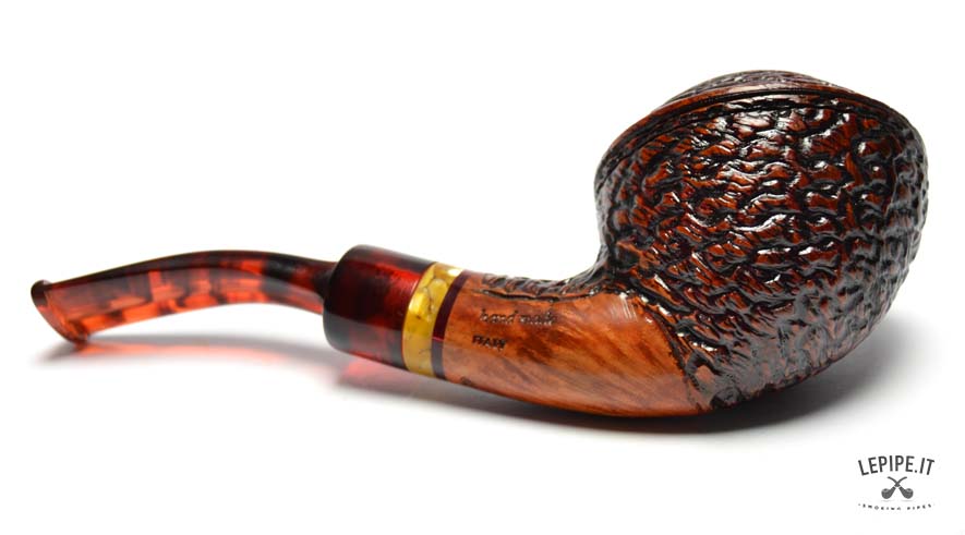 Classificata come Grande, questa pipa offre una buona capacità di carico, perfetta per fumate lunghe e rilassate. La lavorazione rustica della radica la rende unica, e il design Rhodesian le conferisce un aspetto elegante e dinamico.