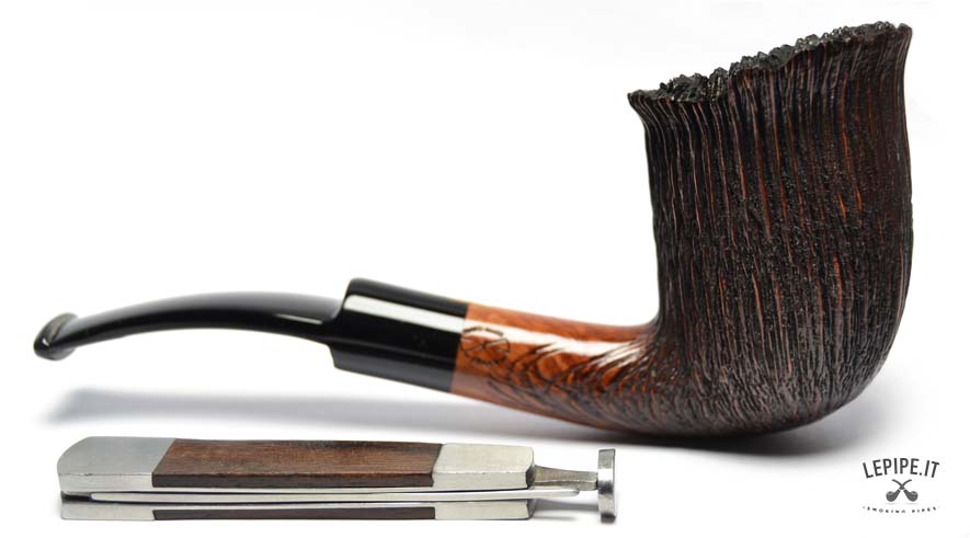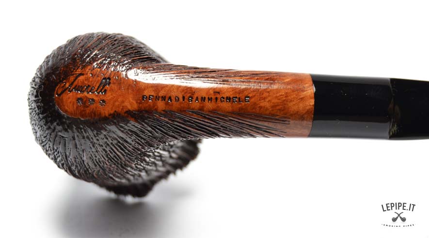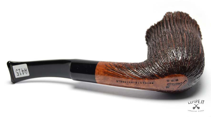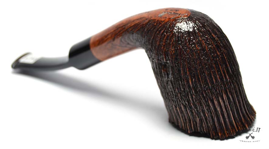 Questa pipa della serie **Penna di San Michele** di **Amorelli** presenta una forma Bent Billiard, un classico che combina eleganza e robustezza. La finitura rustica è realizzata con un'accurata lavorazione che ne esalta la texture naturale, con scanalature profonde che conferiscono alla radica una sensazione tattile unica. La pipa è priva di filtro, per un'esperienza di fumata naturale e diretta.