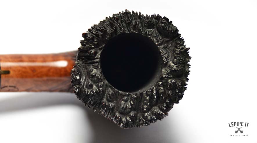 Classificata con 3 stelle, questa pipa offre una buona capacità di carico, ideale per fumate prolungate. Il bocchino in metacrilato nero aggiunge un tocco di eleganza al design, mentre la lavorazione della radica con la sua finitura rustica la rende unica. Il suo design in forma Bent Billiard la rende comoda e funzionale, perfetta per gli appassionati di pipe raffinate.