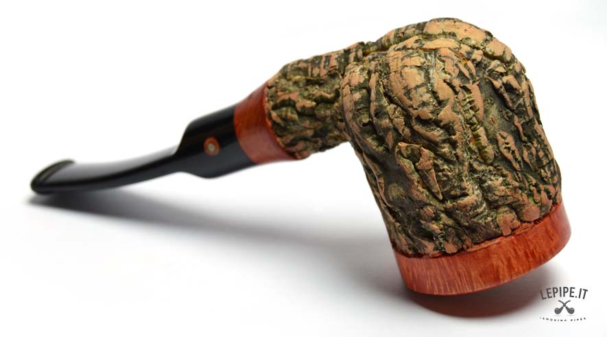 Questa affascinante pipa Spanu con forma Billiard unisce la qualità della radica italiana alla straordinaria originalità del rivestimento in sughero sardo, un materiale naturale, leggero e sorprendentemente piacevole al tatto. Il sughero, lavorato artigianalmente, avvolge la testa della pipa con una texture irregolare che richiama la corteccia di un albero mediterraneo, offrendo un’esperienza visiva e tattile fuori dal comune. Alcune porzioni della radica, come la parte superiore del fornello e il raccordo con il bocchino, sono lasciate volutamente a vista: levigate con cura, mettono in risalto le calde venature del legno e creano un contrasto elegante con la superficie in sughero. Il bocchino in acrilico nero, leggermente curvo, completa l’estetica con raffinatezza e garantisce una fumata confortevole. Dotata di sede per filtro da 9 mm, questa pipa rappresenta un perfetto equilibrio tra innovazione materica e tradizione artigianale, ideale per chi cerca un pezzo unico nel suo genere, profondamente radicato nella cultura sarda e nell’eccellenza manifatturiera italiana.