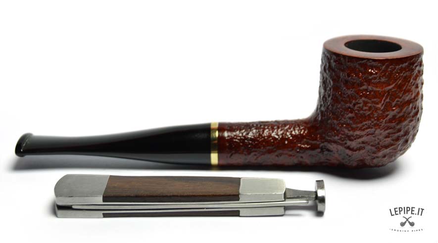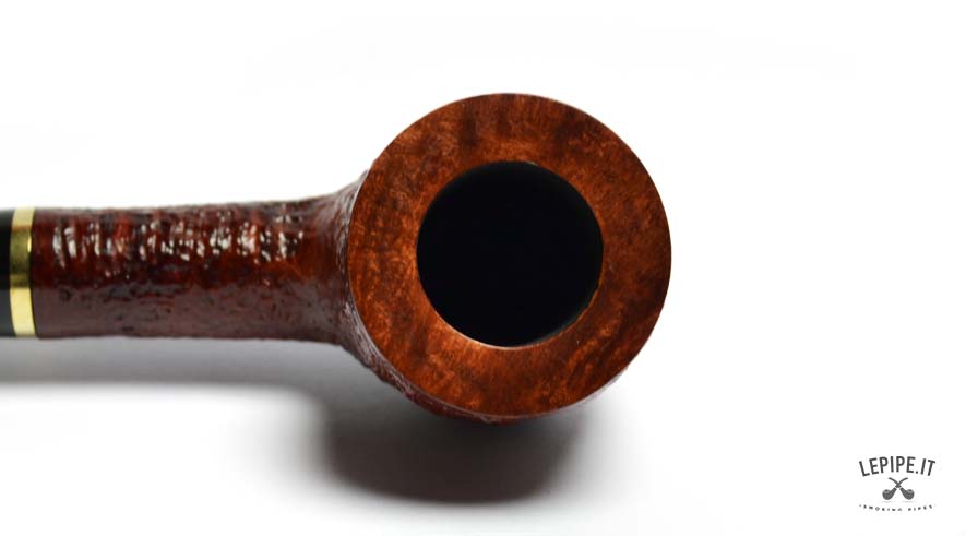 Classica e intramontabile, questa Billiard realizzata da Ercole Bogni è un omaggio alla forma più iconica della tradizione piparia. La rusticatura profonda ma ordinata dona corpo e movimento alla finitura, esaltando le calde sfumature rossastre della radica. L’equilibrio delle proporzioni e la linearità del design garantiscono una presa comoda e una fumata stabile e appagante. Il bocchino in ebanite, lucido e leggermente curvato, è impreziosito da un elegante anello dorato che aggiunge un tocco di raffinatezza. Progettata con sede per filtro da 9 mm, questa pipa coniuga estetica classica e funzionalità moderna, risultando ideale sia per il fumatore esperto che per chi desidera avvicinarsi al mondo della pipa con uno strumento affidabile e ben costruito.