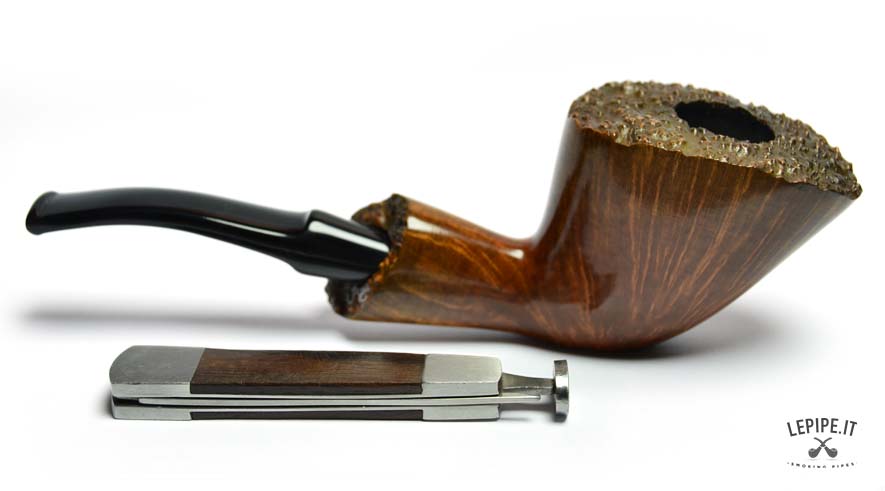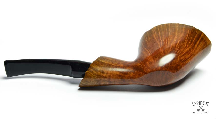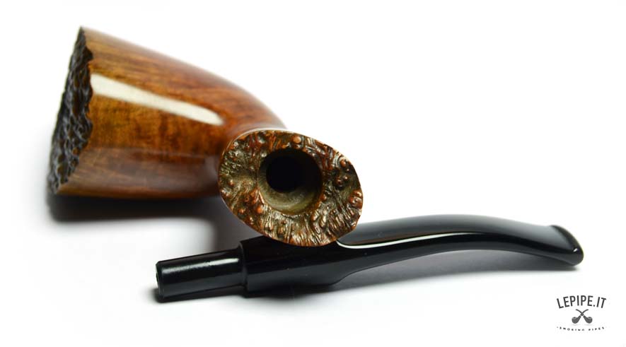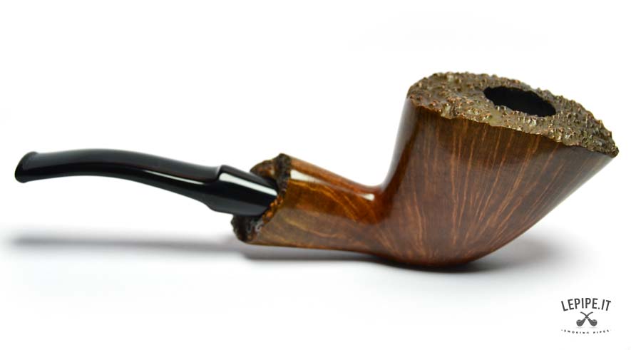 Questa pipa Bogni nella forma Freeform è un esempio affascinante di equilibrio tra arte scultorea e funzionalità quotidiana. Il corpo, modellato con grande fluidità, si sviluppa in linee morbide e continue, mettendo in risalto le splendide venature della radica lucidata a specchio. La base piatta la rende una Stand-Up naturale, perfetta da appoggiare senza bisogno di supporti. La testa della pipa presenta una rusticatura profonda sul piano superiore, creando un contrasto materico sorprendente con il resto della superficie liscia. Il bocchino nero leggermente inclinato accompagna con eleganza il profilo, completando un design che esprime tutta la libertà e l’originalità del lavoro di Ercole Bogni. Una pipa per chi cerca qualcosa di unico, capace di unire bellezza e funzionalità.