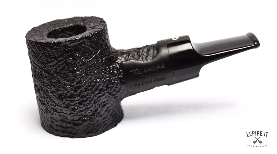 Questa pipa artigianale è un’affascinante interpretazione contemporanea dello stile Poker, impreziosita da una struttura Stand-Up e dalla raffinata tecnologia Reverse Calabash. Realizzata da Croci Paolo per la linea Talamona, incarna l’equilibrio perfetto tra innovazione tecnica e carattere scultoreo. Il fornello, alto e cilindrico, si erge con decisione grazie alla base perfettamente piana che consente alla pipa di stare in piedi autonomamente, offrendo praticità e una forte presenza visiva. La rustificazione profonda e vigorosa, avvolta in una finitura nera opaca, esalta la matericità della radica e dona al pezzo un’aura di robustezza e mistero. Il sistema Reverse Calabash, discretamente integrato nella struttura, crea una camera d'espansione che raffredda e asciuga il fumo, migliorando sensibilmente l’esperienza aromatica. Il bocchino in acrilico nero, lucido e armoniosamente raccordato, completa il profilo della pipa con una nota di modernità e funzionalità. È un oggetto pensato per chi apprezza la qualità del gesto lento e il valore di un design deciso, capace di raccontare una storia di artigianato e stile.