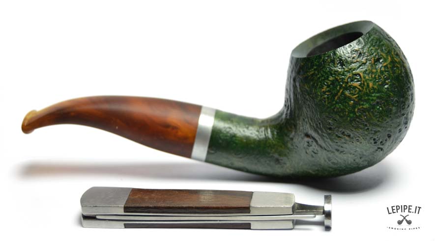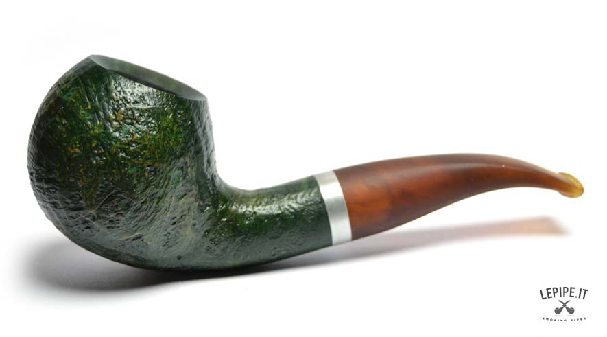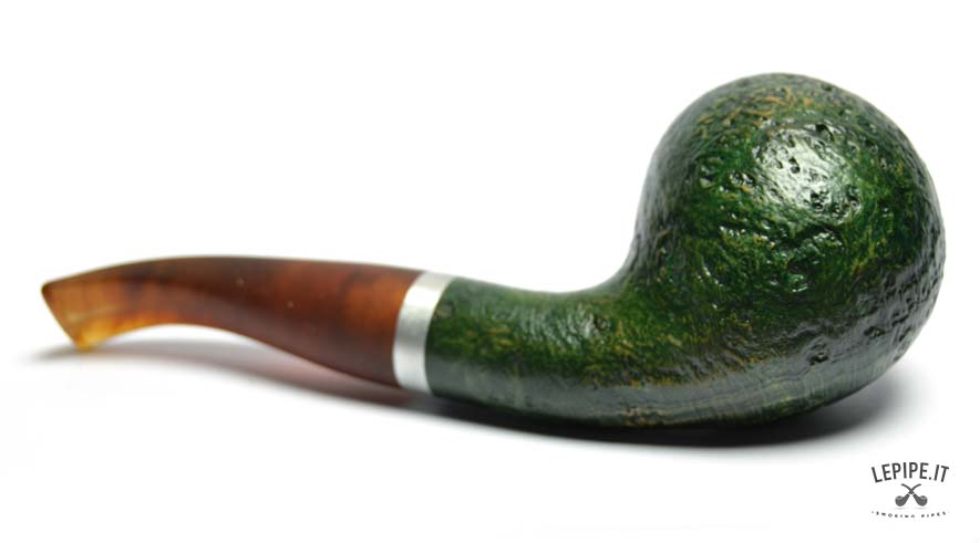 La pipa Vauen Ranger modello 4337 presenta una classica forma Bent Apple, compatta e ben proporzionata, realizzata in radica sabbiata con una particolare finitura verde scura che mette in risalto la struttura del legno. La curvatura dolce del profilo le conferisce un aspetto equilibrato e una presa confortevole.