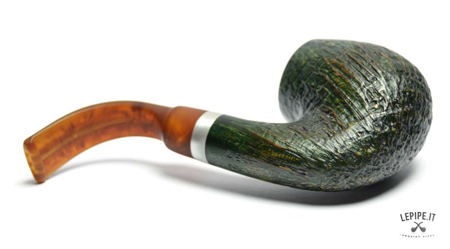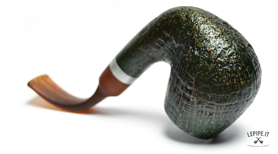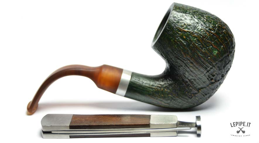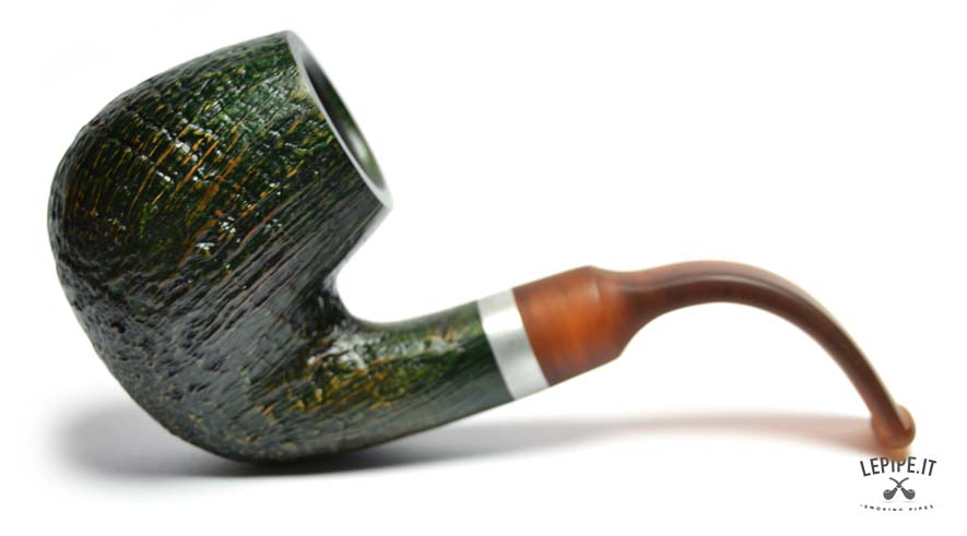 La pipa Vauen Ranger modello 4335 è una classica Oom Paul in radica sabbiata, con finitura verde scura che esalta la struttura del legno e dona profondità visiva alla superficie. La forma completamente curva offre un’ottima ergonomia, pensata per una fumata rilassata e prolungata, ideale anche in presa a mano.