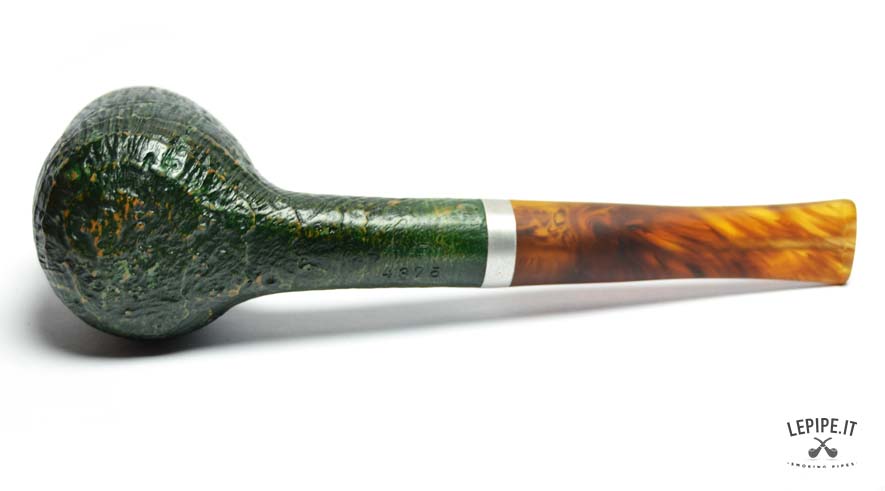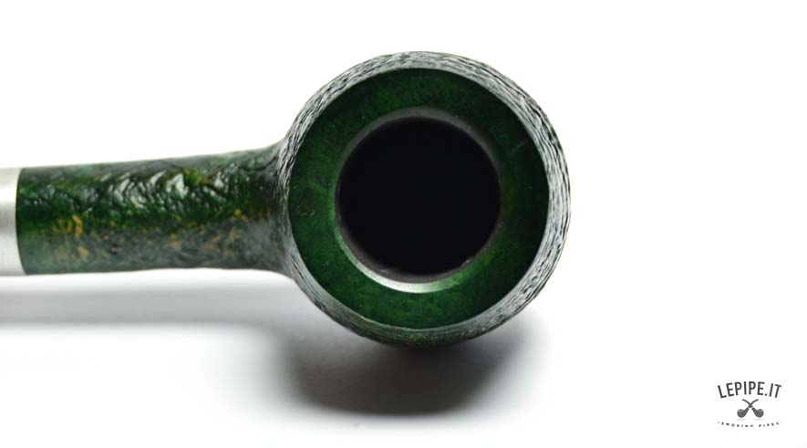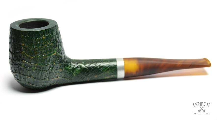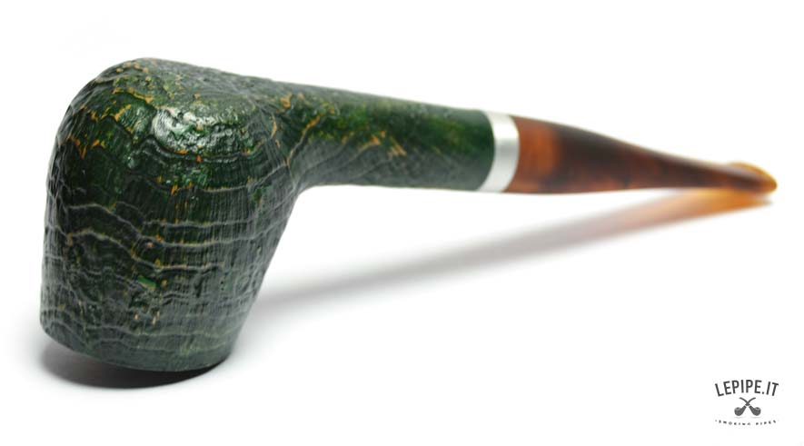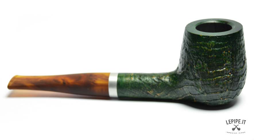 La pipa Vauen Ranger modello 4375 è realizzata in radica sabbiata con una finitura verde scura che mette in risalto la venatura naturale del legno. La classica forma Billiard è proposta qui in versione stand-up, con base piatta che consente alla pipa di rimanere in piedi autonomamente, una caratteristica pratica per l’uso quotidiano.