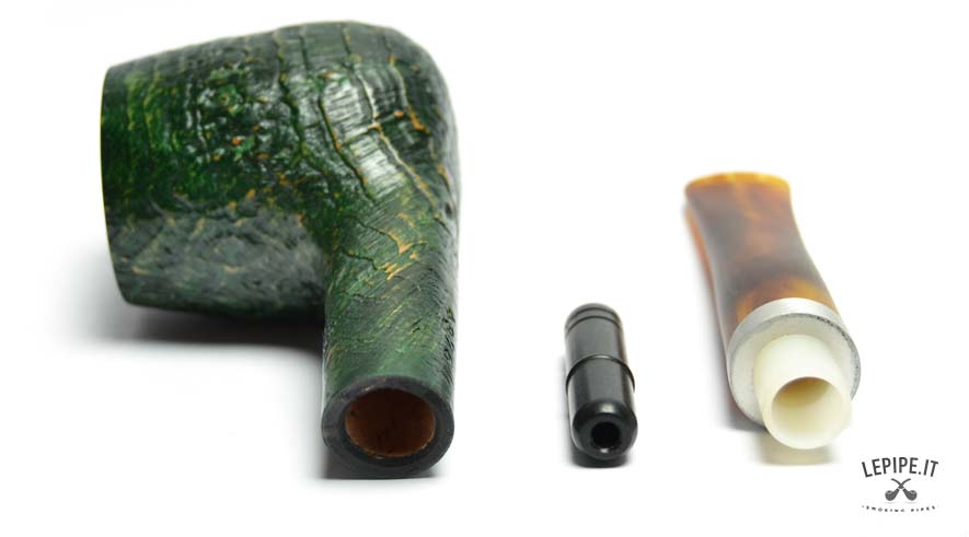 Il bocchino diritto in acrilico effetto ambra è predisposto per l’uso con filtri da 9 mm, in linea con gli standard produttivi Vauen. La ghiera in metallo satinato rafforza l’innesto e aggiunge un dettaglio estetico moderno e sobrio. Il risultato è una pipa ben bilanciata, comoda da impugnare e semplice da gestire nella manutenzione.