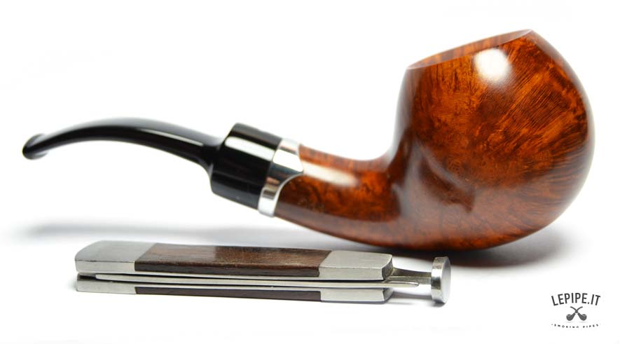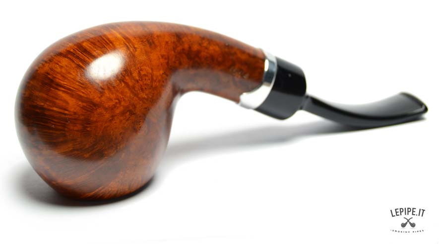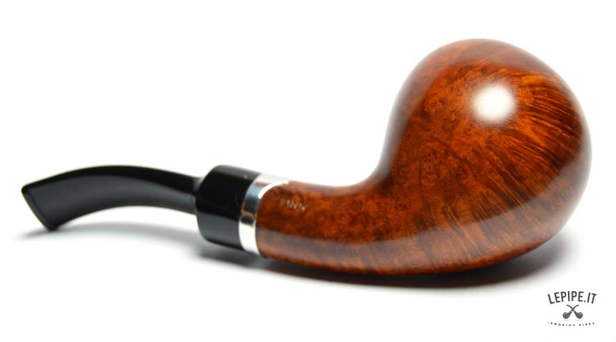 La pipa Vauen Finn modello 137 è una classica Bent Apple realizzata in radica liscia con finitura naturale, che mette in risalto le fiammature e gli occhielli del legno. La forma curva e compatta è ben bilanciata, pensata per offrire una fumata confortevole e uno stile sobrio ed elegante.