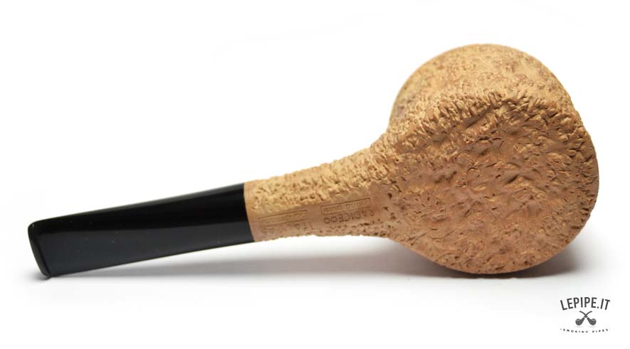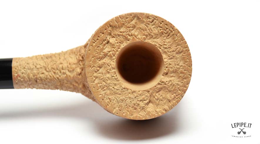 La particolare lavorazione della superficie esalta la rusticità materica del legno, creando un affascinante gioco di texture. La forma Stand-Up garantisce stabilità grazie alla base piatta, pratica per appoggiare la pipa tra una fumata e l’altra.