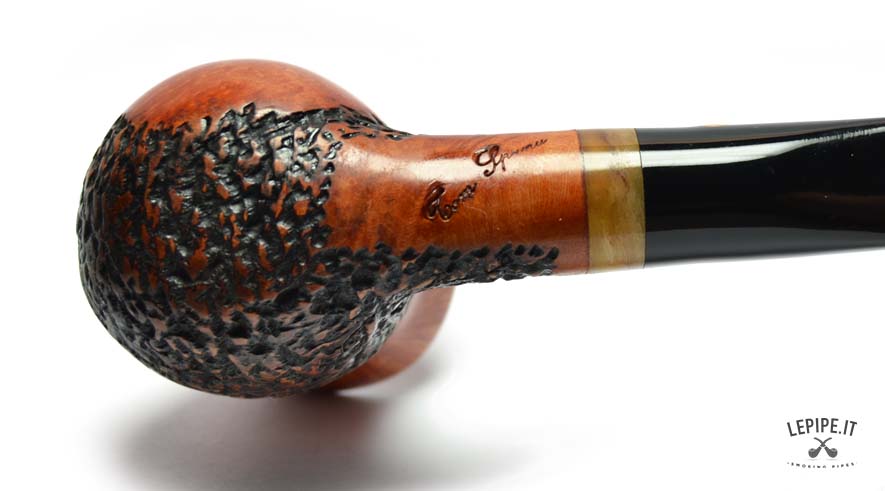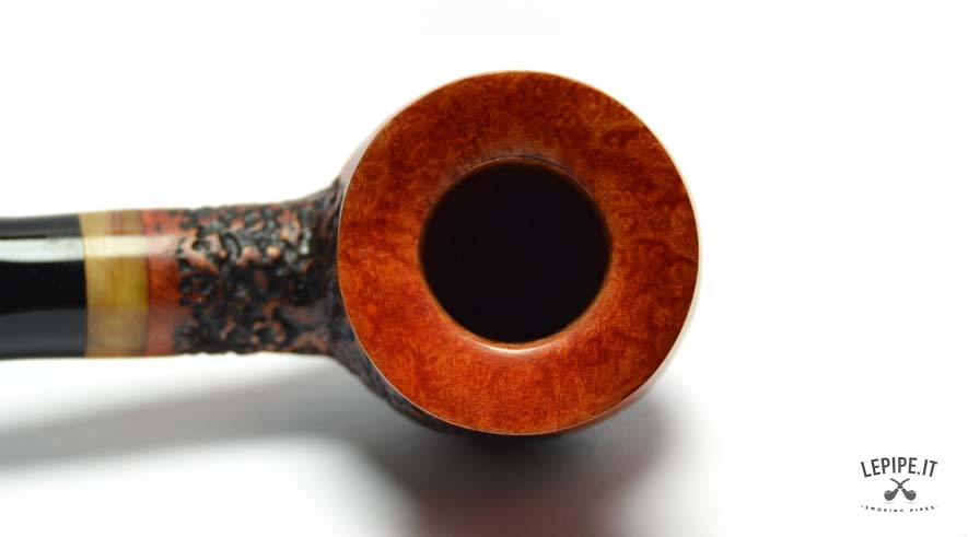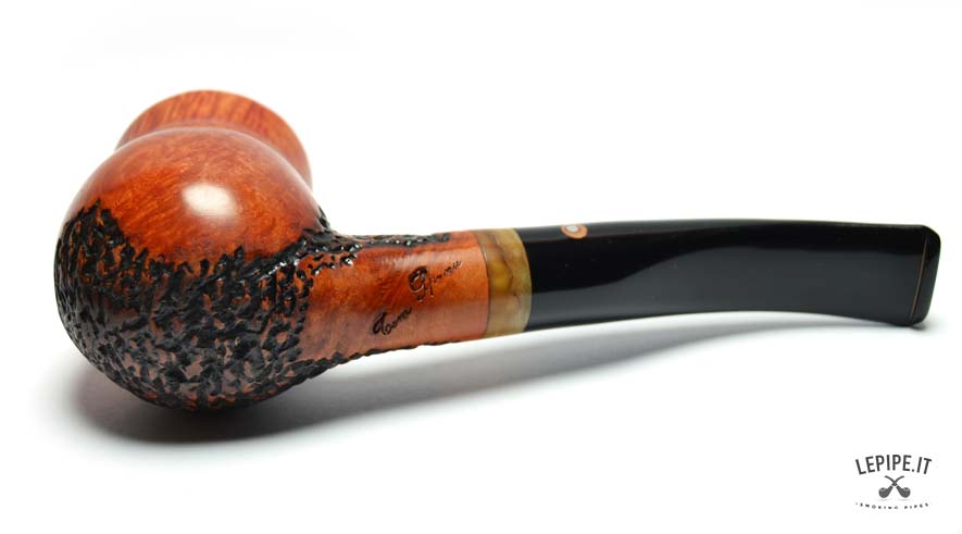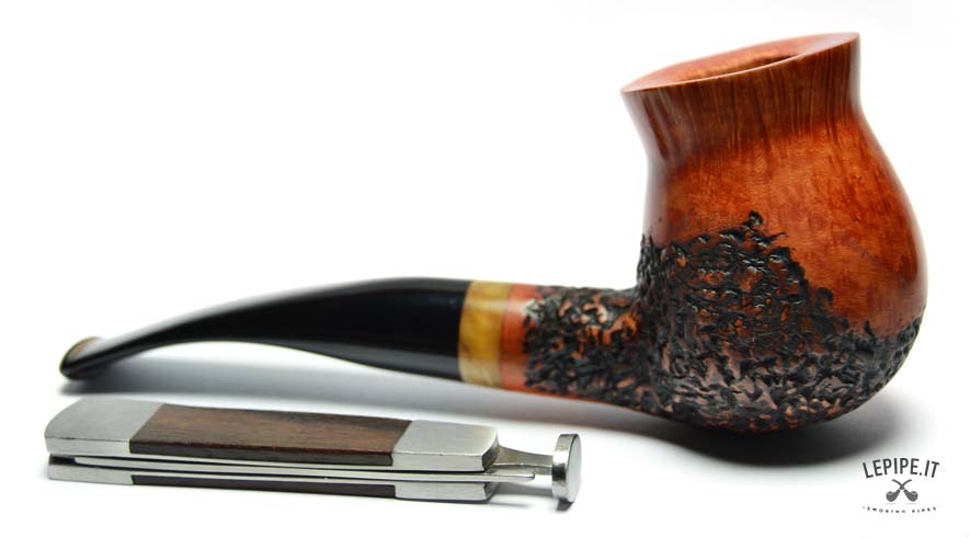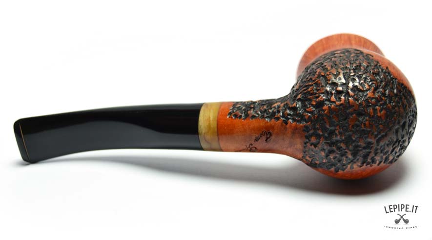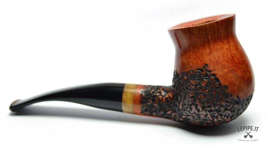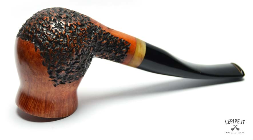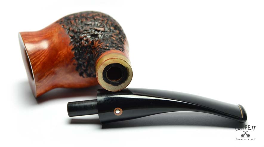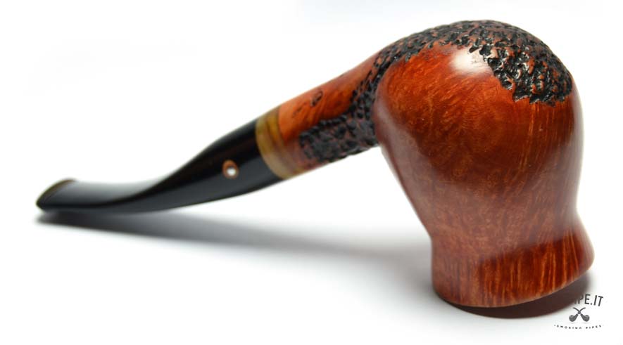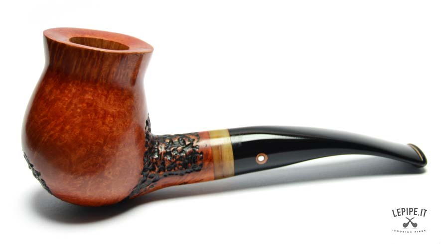 Equilibrata nelle forme e originale nella finitura, questa pipa Freeform Spanu unisce elementi classici a scelte estetiche più audaci. La testa, sagomata con profilo svasato e base stabile, presenta una parte liscia in evidenza e una zona con lavorazione rusticata, per un effetto visivo dinamico e materico. Il fornello si distingue per la forma ampia e leggermente rialzata, mentre il cannello integra armoniosamente la parte rusticata con l'inserto in corno, in continuità con il bocchino curvo in metacrilato nero. La struttura Stand-Up consente di appoggiare la pipa senza supporti, rendendola pratica e funzionale. Come tutte le creazioni del marchio, è una pipa artigianale italiana senza filtro, pensata per offrire una fumata diretta e autentica.