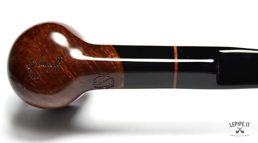 Pipa Amorelli - 2 stelle n. 80 Stand-Up - Elaborazione Frac Bocchino in metacrilato Senza filtro Liscia Con altra elaborazione Diametro Interno: 21 mm. Diametro Esterno: 38 mm. Lunghezza: 137 mm. Altezza: 59 mm. Peso: 57 gr. Profondità: 43 mm.