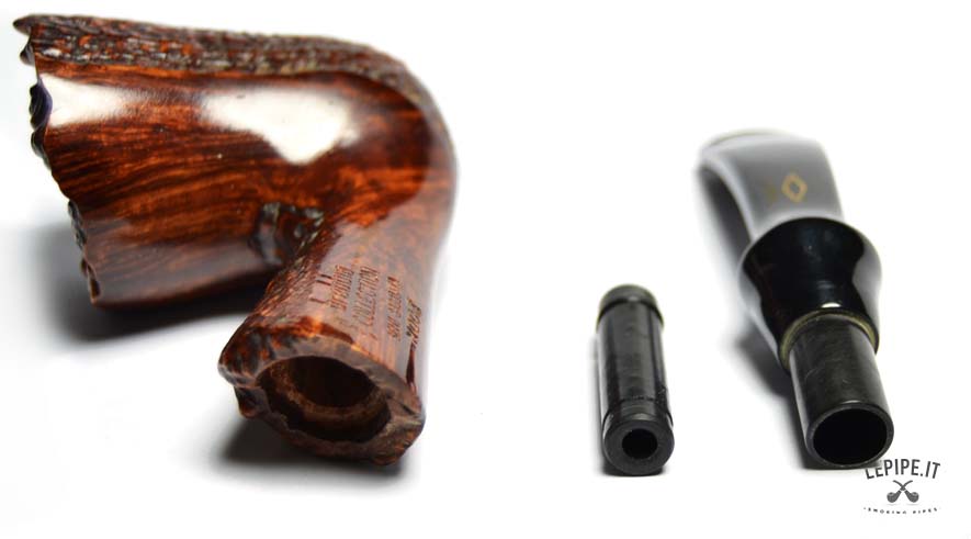 Pipa Brebbia - Collection n. 7 14B - Noce Bocchino in metacrilato Senza filtro Semi sabbiata Senza elaborazione Diametro Interno: 20 mm. Diametro Esterno: 39 mm. Lunghezza: 140 mm. Altezza: 56 mm. Peso: 51 gr. Profondità: 39 mm.