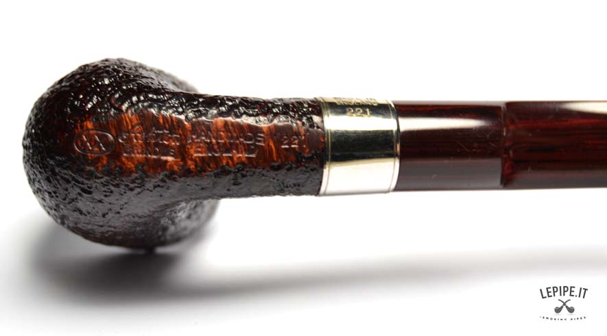 La Ashton Pebble Grain n. 124 presenta una forma curva Bent Billiard, uno dei design più classici e apprezzati nel mondo delle pipe. Il fornello ha un diametro interno di 20 mm e una profondità di 39 mm, offrendo un’ottima capacità di carico per una fumata prolungata e soddisfacente. La finitura sabbiata, tipica della serie Pebble Grain, mette in risalto le venature della radica con tonalità scure che variano dal marrone intenso al nero profondo, donando alla pipa un aspetto robusto e ricco di carattere. Il bocchino in cumberland, decorato con sfumature rosse e gialle, si combina perfettamente con la radica scura, creando un affascinante contrasto visivo. La pipa è inoltre impreziosita da una vera in metallo argentato che aggiunge un tocco di raffinatezza al design complessivo. Con una lunghezza di 135 mm e un peso di 39 g, è una pipa leggera e maneggevole, perfetta per gli amanti delle pipe dal design classico e ricercato. Prezzo: 279,00 € + IVA. Puoi risparmiare fino a 19,53 € se disponi dei punti sconto.