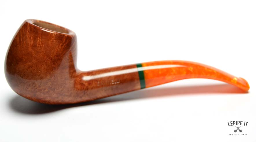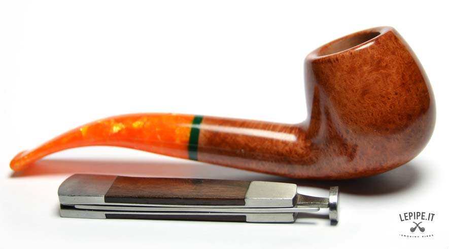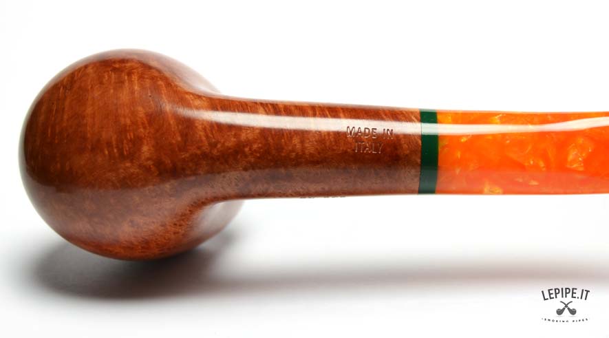 La Savinelli - Arancia n. 6, modello 636KS, si distingue per la sua elegante forma Bent Apple e per il suo design sofisticato. Con una lunghezza di 143 mm e un fornello da 20 mm, questa pipa offre una fumata confortevole e bilanciata. La radica liscia in tonalità marrone-arancio si abbina perfettamente al bocchino in metacrilato arancione craquelé, arricchito da un anello verde che spezza armoniosamente la continuità cromatica. Dotata di una sede per filtro da 9 mm, questa pipa garantisce un’esperienza di fumata morbida e raffinata, ideale per gli amanti del design innovativo e dell’artigianato di alta qualità.