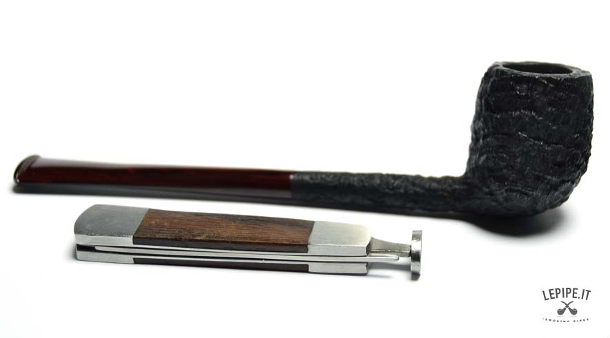 Pipa Il Duca - Barone n. 80  Bocchino in cumberland Senza filtro Sabbiata Senza elaborazione Diametro Interno: 18 mm. Diametro Esterno: 32 mm. Lunghezza: 159 mm. Altezza: 40 mm. Peso: 21 gr. Profondità: 31 mm.
