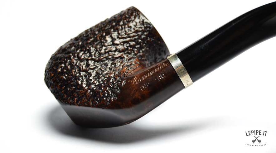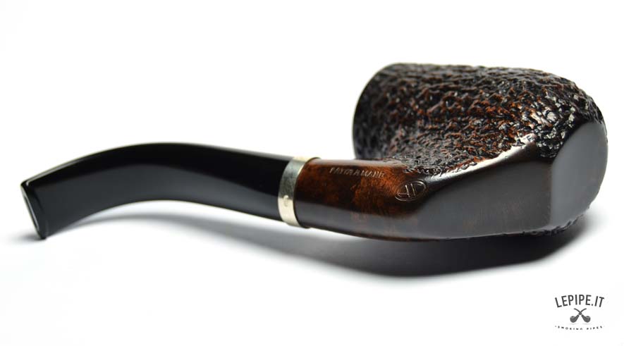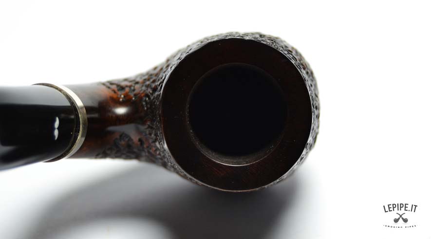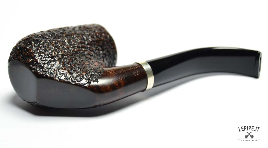Pipa Caminetto - Rusticata n. 63 Gruppo 8 - Stand-Up Bocchino in metacrilato Senza filtro Rusticata Con elaborazione in argento Diametro Interno: 21 mm. Diametro Esterno: 37 mm. Lunghezza: 142 mm. Altezza: 57 mm. Peso: 63 gr. Profondità: 47 mm.