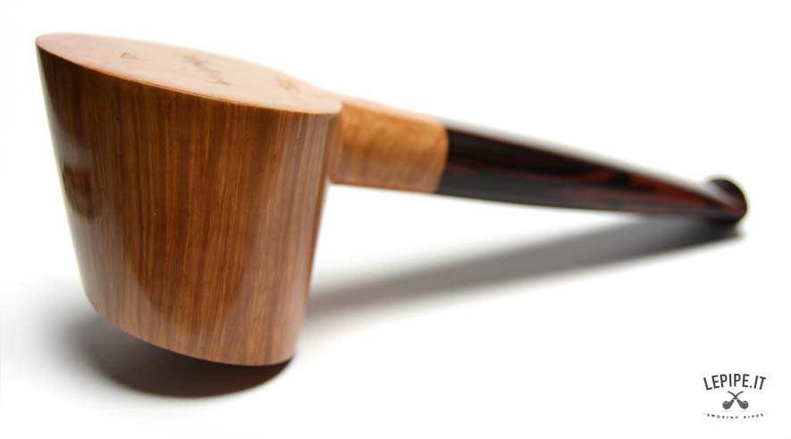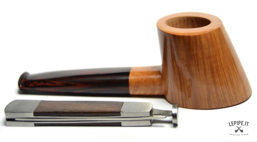 La Bacigalupi - Bandiera n. 58 si distingue per la sua combinazione di forma e funzionalità. La forma dritta "Stand-Up", con una finitura liscia, consente alla pipa di restare in piedi autonomamente, mentre il bocchino in cumberland aggiunge un tocco di sofisticatezza. Con un diametro interno del fornello di 23 mm e una lunghezza totale di 127 mm, questa pipa da 59 grammi offre il perfetto equilibrio tra dimensioni e peso, ideale per una fumata lunga e rilassante.