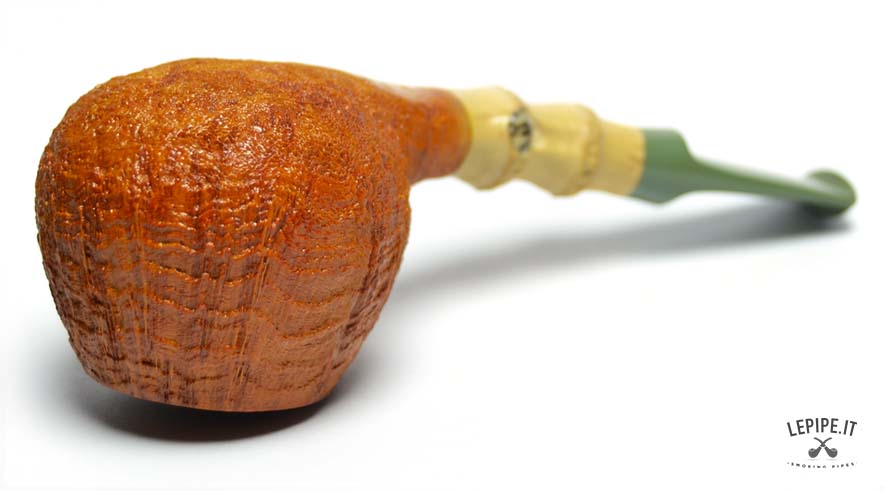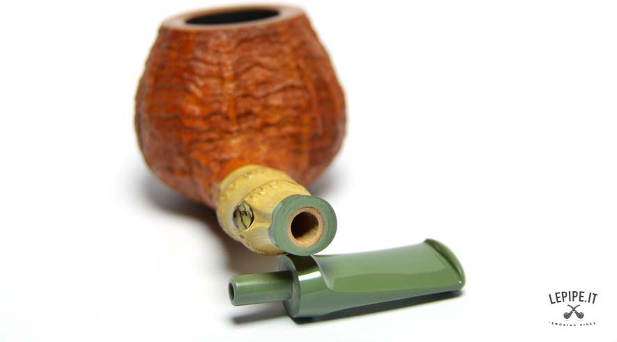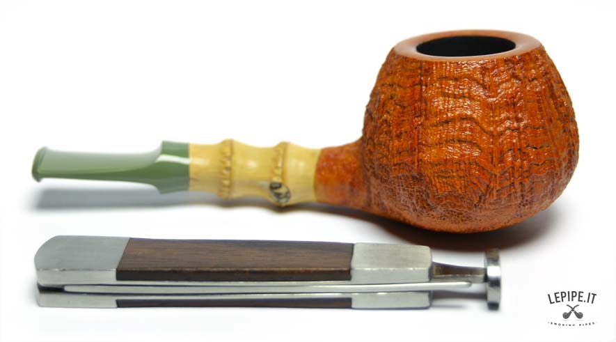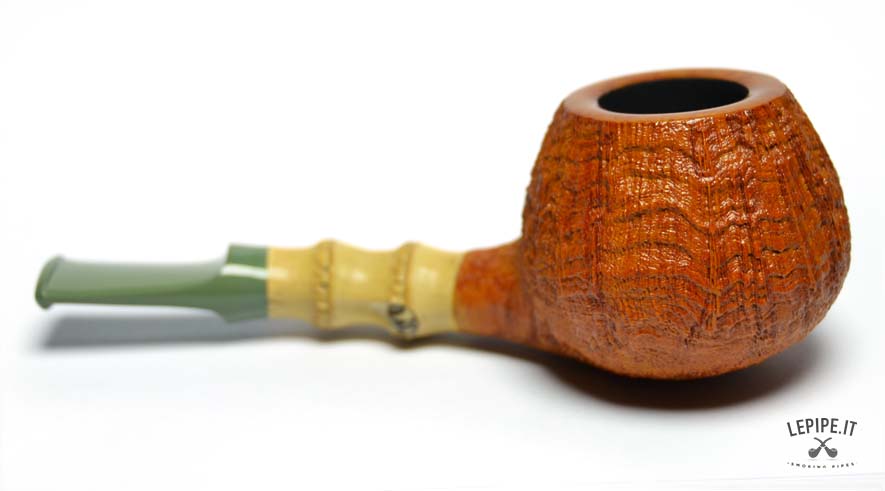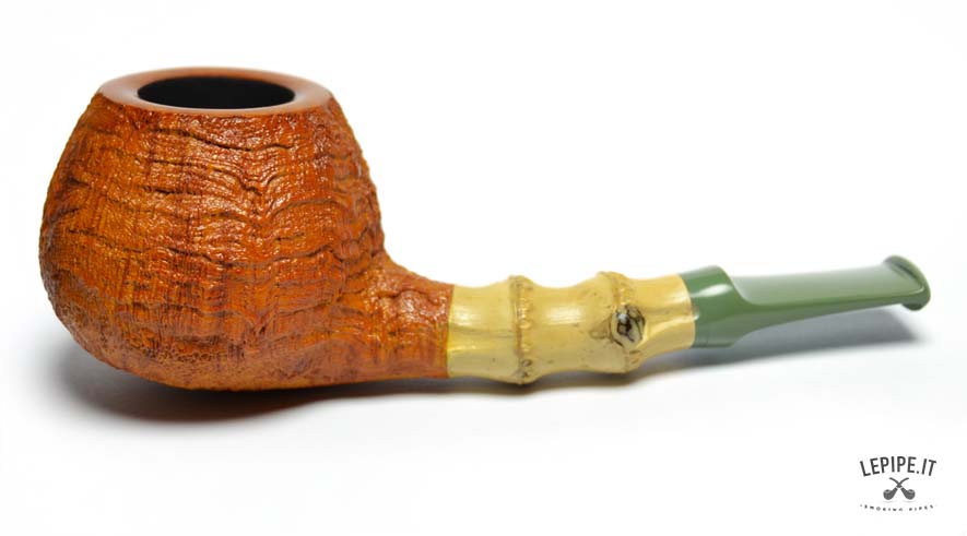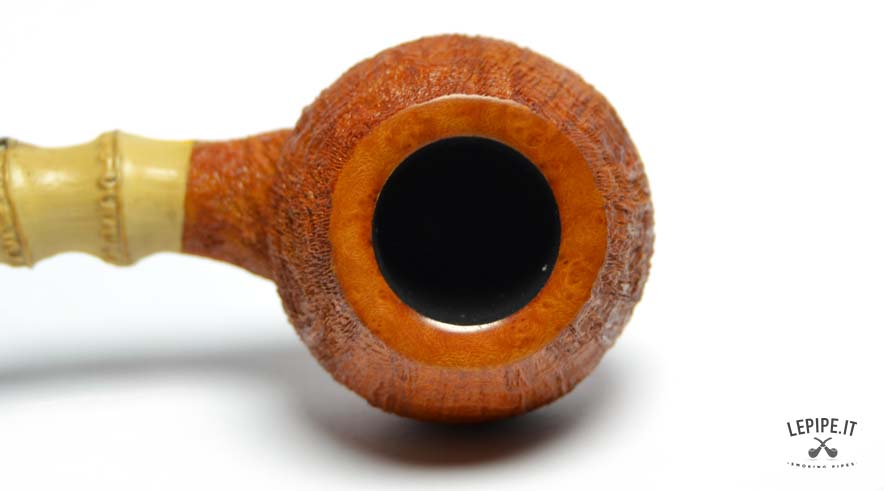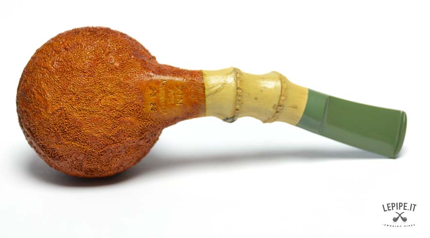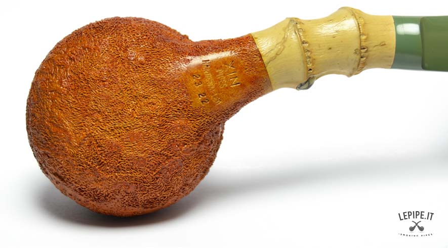 Pipa Xin Li - n. 13 Stand-up Bocchino in cumberland Senza filtro Sabbiata Con elaborazione in bamboo Diametro Interno: 19 mm. Diametro Esterno: 44 mm. Lunghezza: 115 mm. Altezza: 38 mm. Peso: 35 gr. Profondità: 25 mm.