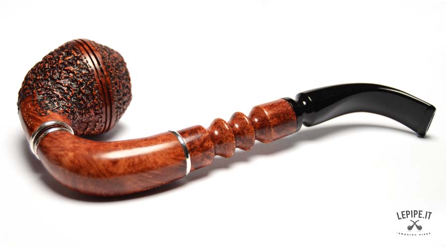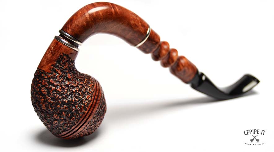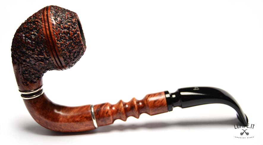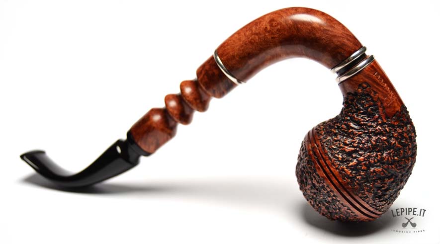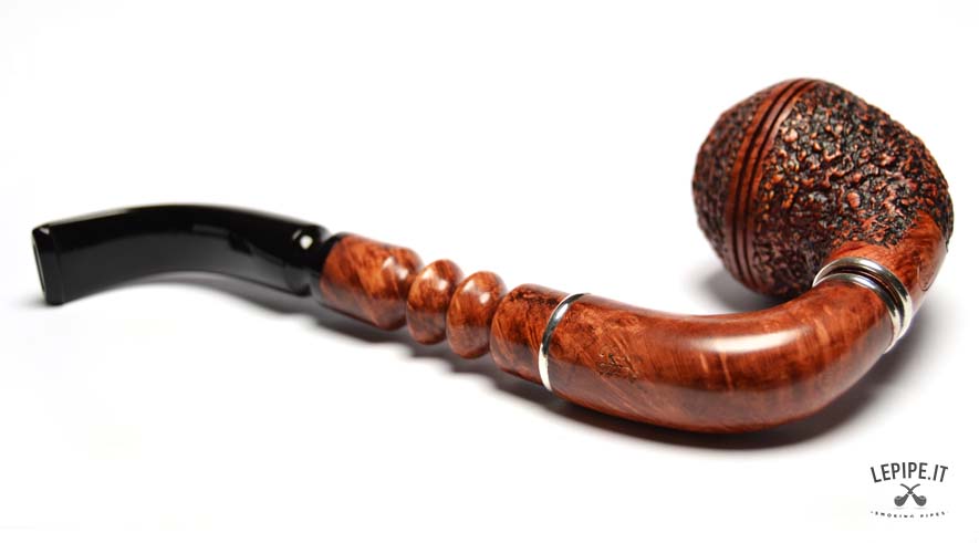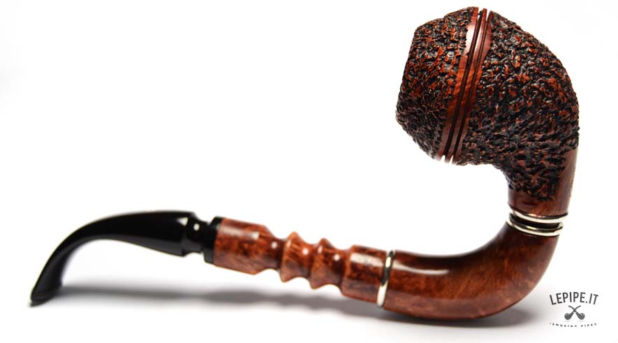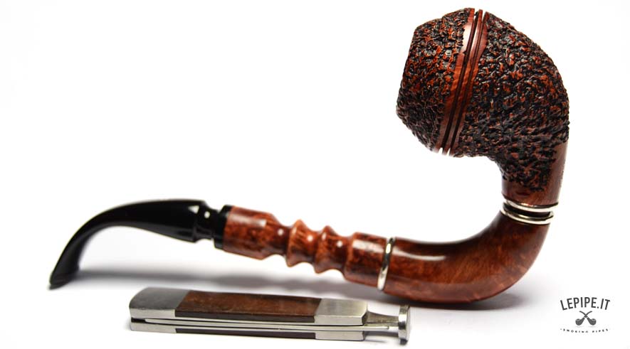 Pipa Pascucci - Pezzo Unico n. 27  Bocchino in metacrilato Senza filtro Rusticata Con altra elaborazione Diametro Interno: 19 mm. Diametro Esterno: 44 mm. Lunghezza: 169 mm. Altezza: 51 mm. Peso: 72 gr. Profondità: 39 mm.