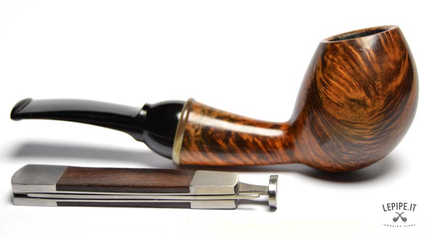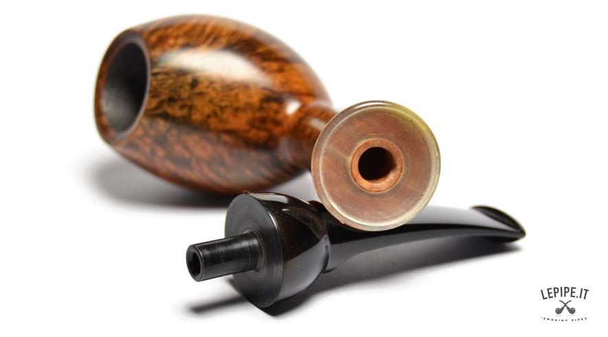 Pipa Emiliano - n. 2  Bocchino in ebanite Senza filtro Liscia Con altra elaborazione Diametro Interno: 19 mm. Diametro Esterno: 38 mm. Lunghezza: 140 mm. Altezza: 45 mm. Peso: 46 gr. Profondità: 33 mm.