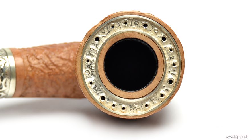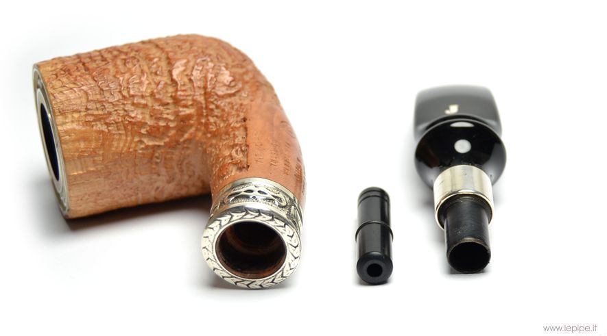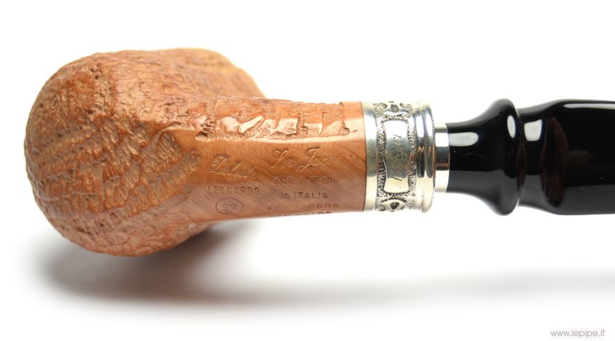 Perché Leonardo? Bocchino in metacrilato Con sede per filtro da 9 mm. Sabbiata Con elaborazione in argento Diametro Interno: 20 mm. Diametro Esterno: 41 mm. Lunghezza: 157 mm. Altezza: 57 mm. Peso: 81 gr. Profondità: 45 mm.">