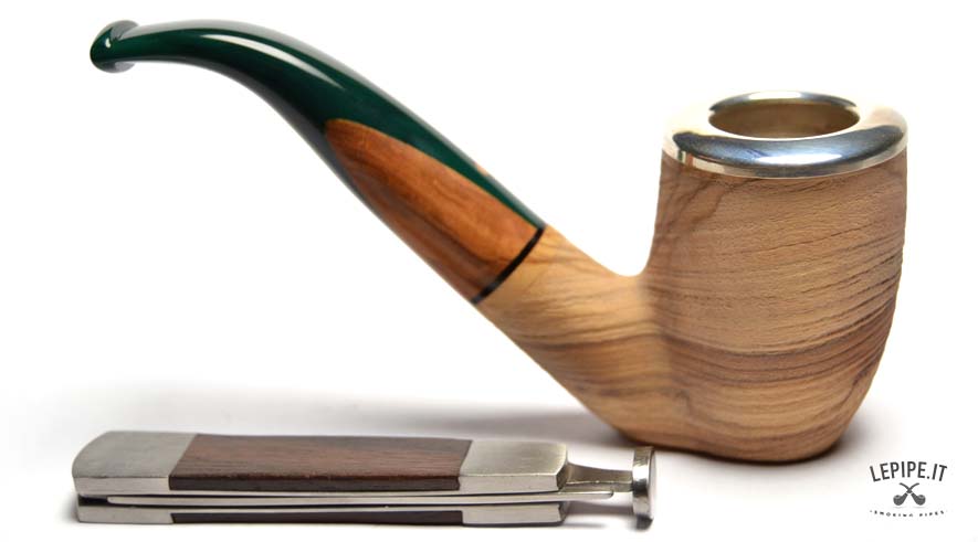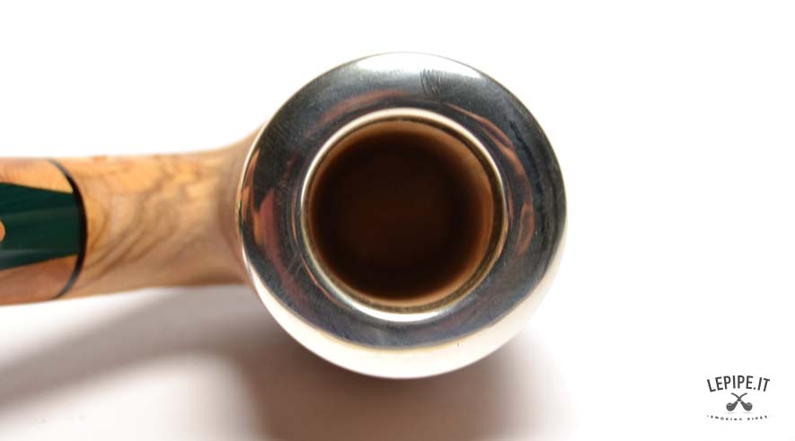 Pipa Paronelli - Olea Excelsa n. 8 In legno di ulivo - Parafuoco in argento - Stand-Up Bocchino in metacrilato Senza filtro In legno di ulivo Con elaborazione in argento Diametro Interno: 21 mm. Diametro Esterno: 34 mm. Lunghezza: 127 mm. Altezza: 51 mm. Peso: 62 gr. Profondità: 40 mm.