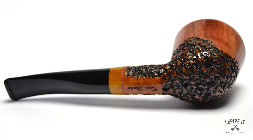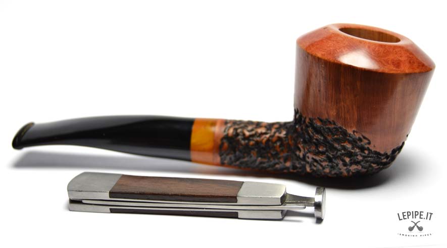 Pipa Spanu - Semi rusticata n. 55 Stand-Up Bocchino in metacrilato Senza filtro Semi rusticata Con altra elaborazione Diametro Interno: 21 mm. Diametro Esterno: 48 mm. Lunghezza: 155 mm. Altezza: 51 mm. Peso: 66 gr. Profondità: 37 mm.