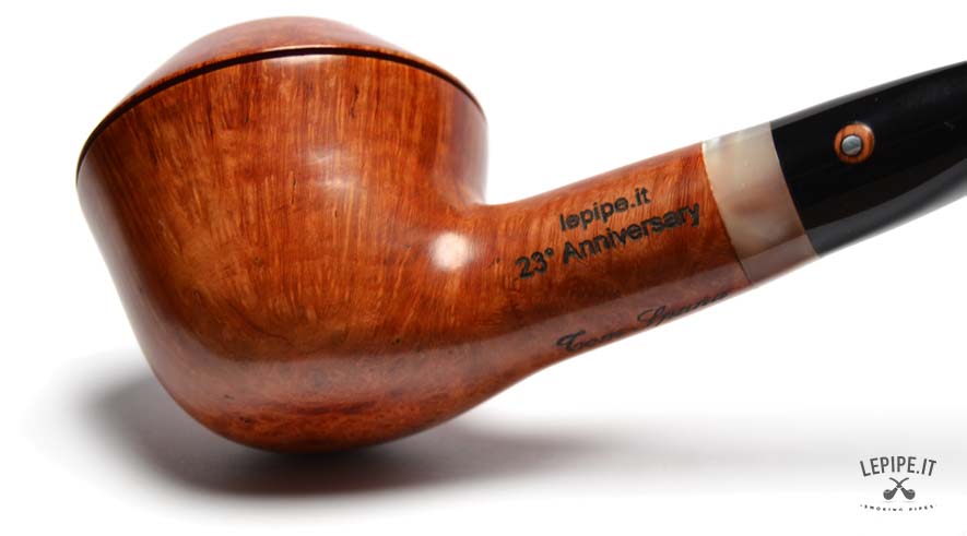 Pipa Spanu - 23° Ann. lepipe.it n. 2 Con Pigino in regalo - Gruppo F - StandUp Bocchino in metacrilato Senza filtro Liscia Con altra elaborazione Diametro Interno: 21 mm. Diametro Esterno: 50 mm. Lunghezza: 152 mm. Altezza: 49 mm. Peso: 63 gr. Profondità: 34 mm.