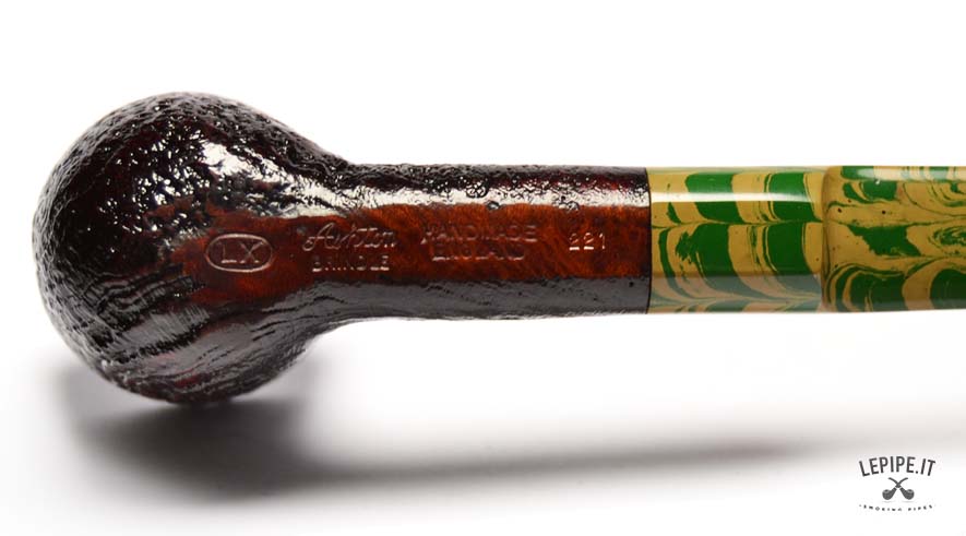 La Ashton Pebble Grain n. 135 con la sua forma Stand-Up Dublin, si distingue per il suo design robusto e distintivo. La finitura sabbiata scura, che varia dal marrone intenso al nero, mette in risalto la texture della radica, donando alla pipa un aspetto ruvido ma elegante. Il bocchino in ashtonite, con sfumature verdi e gialle marmorizzate, aggiunge un contrasto vibrante e unico alla pipa, creando un look fresco e originale. Con una lunghezza di 148 mm e un peso di 46 g, questa pipa è comoda da maneggiare e ideale per fumate prolungate. Il fornello ha un diametro interno di 21 mm e una profondità di 41 mm, perfetto per una fumata duratura e intensa. La vera in metallo argentato aggiunge un ulteriore tocco di raffinatezza al design. Prezzo: 328,00 € + IVA. Puoi risparmiare fino a 22,96 € con i punti sconto.