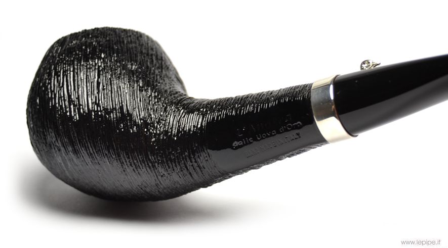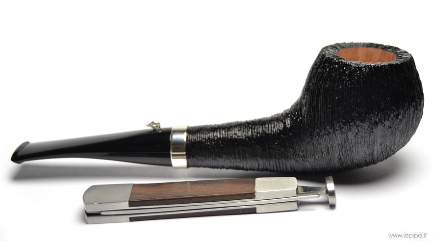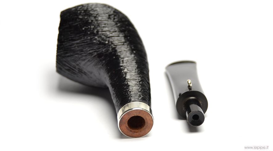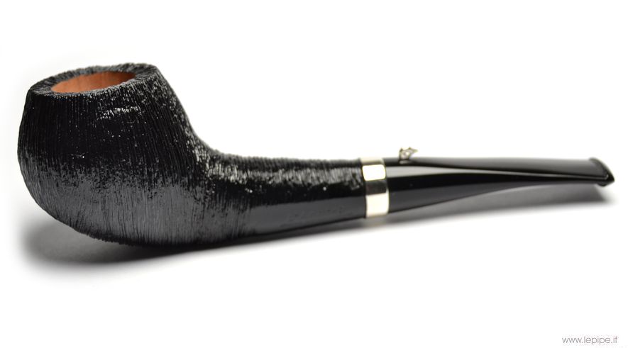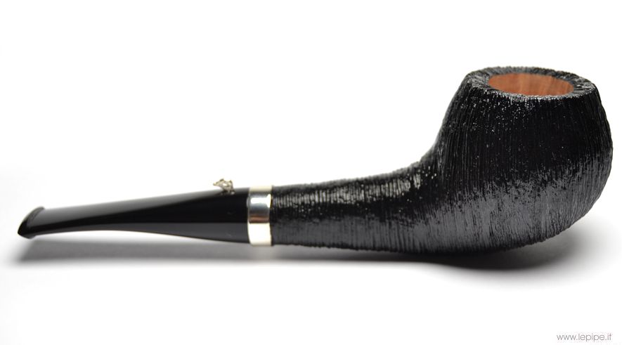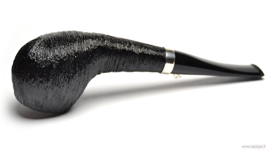 Pipa Anatra - Pettinata n. 52  Bocchino in metacrilato Senza filtro Sabbiata Con elaborazione in argento Diametro Interno: 20 mm. Diametro Esterno: 44 mm. Lunghezza: 153 mm. Altezza: 43 mm. Peso: 59 gr. Profondità: 32 mm.