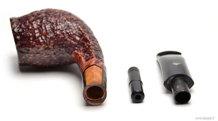 Pipa Viprati - 2012 n. 01  Bocchino in metacrilato Con sede per filtro da 9 mm. Sabbiata Con altra elaborazione Diametro Interno: 22 mm. Diametro Esterno: 41 mm. Lunghezza: 143 mm. Altezza: 53 mm. Peso: 52 gr. Profondità: 46 mm.