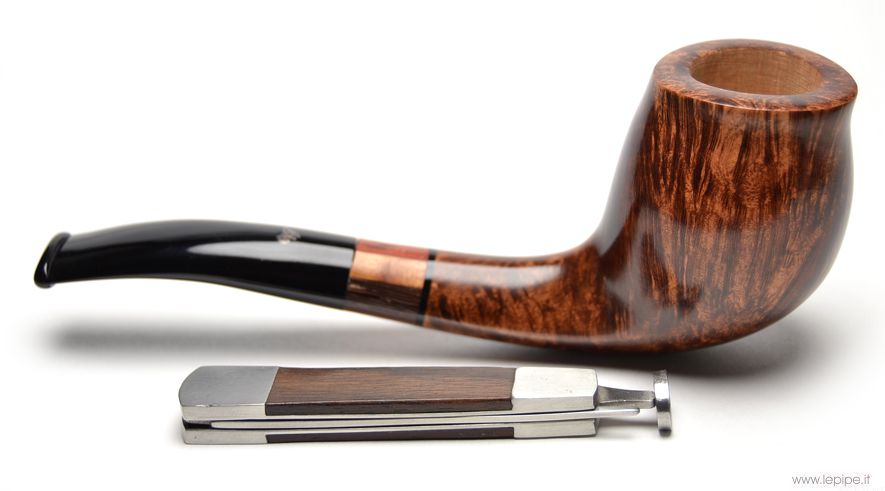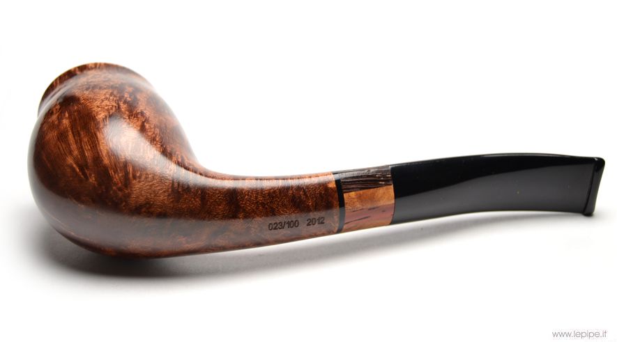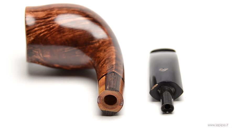 Pipa Viprati - 2012 n. 03  Bocchino in metacrilato Senza filtro Liscia Con altra elaborazione Diametro Interno: 22 mm. Diametro Esterno: 42 mm. Lunghezza: 151 mm. Altezza: 52 mm. Peso: 65 gr. Profondità: 47 mm.