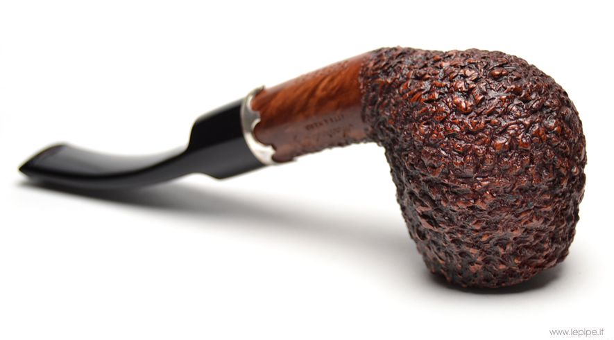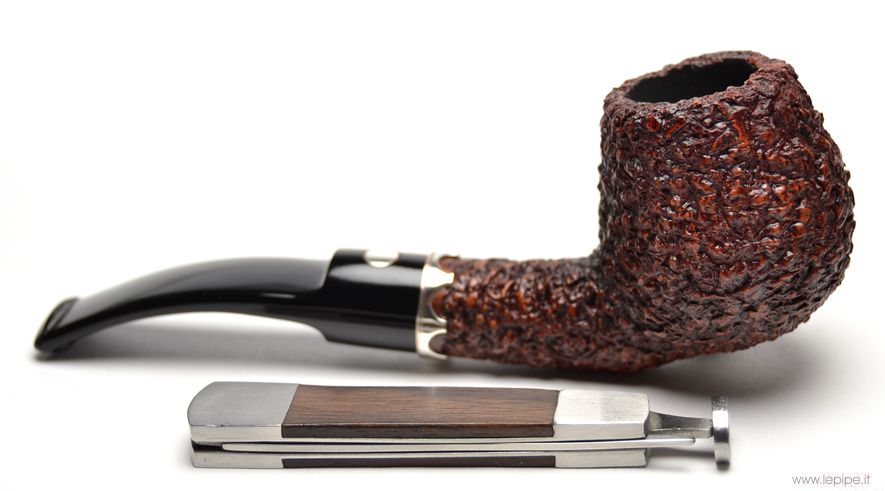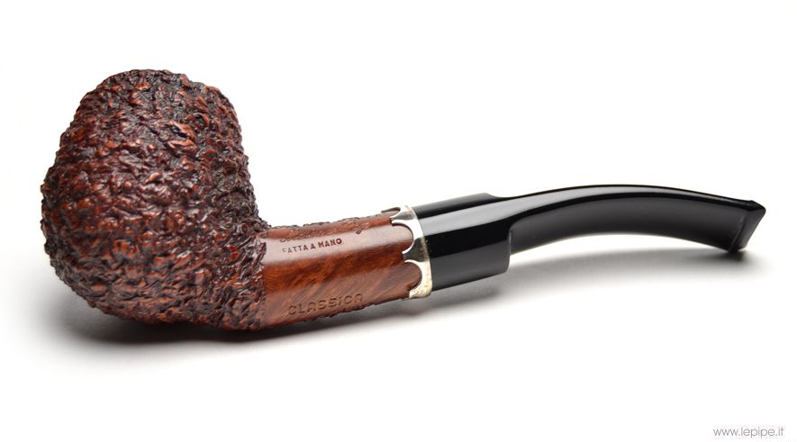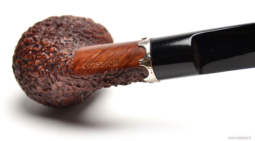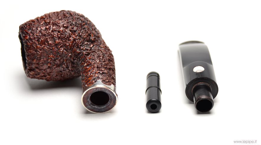 Pipa Mastro de Paja - Classica Rust. L n. 05  Bocchino in metacrilato Con sede per filtro da 9 mm. Rusticata Con elaborazione in argento Diametro Interno: 21 mm. Diametro Esterno: 38 mm. Lunghezza: 142 mm. Altezza: 45 mm. Peso: 52 gr. Profondità: 45 mm.