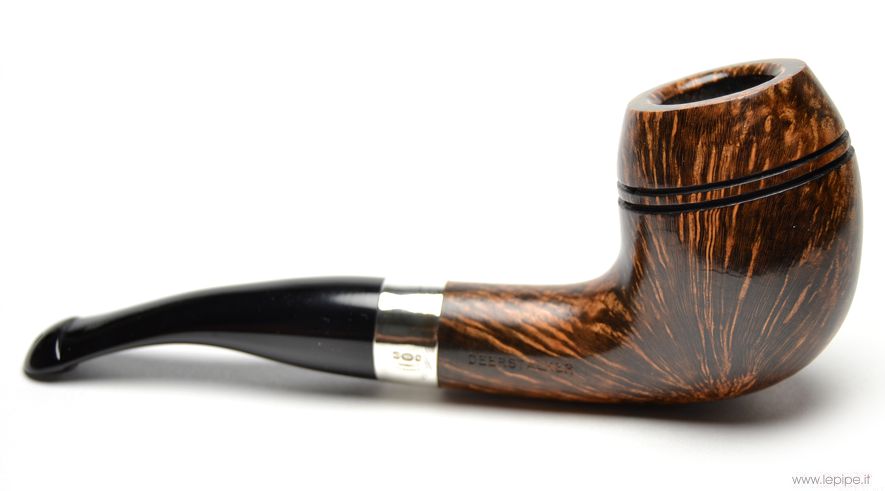 Pipa Peterson - S.H. Dark n. 16 Deerstalker Bocchino in ebanite Senza filtro Liscia Con elaborazione in argento Diametro Interno: 19 mm. Diametro Esterno: 41 mm. Lunghezza: 158 mm. Altezza: 55 mm. Peso: 61 gr. Profondità: 43 mm.