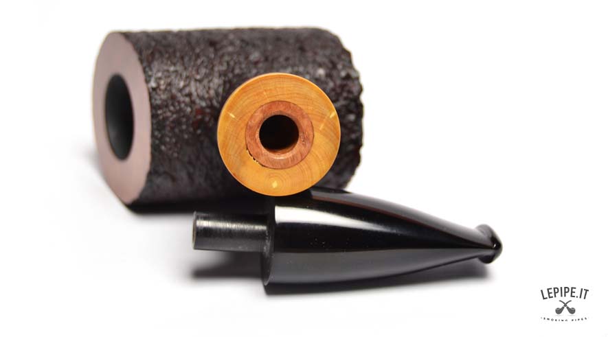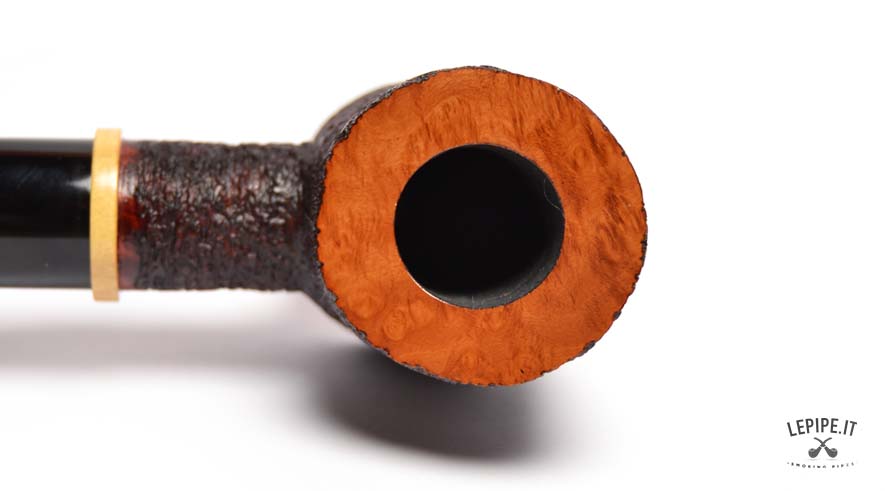 Pipa Damini - n. 1 Stand-Up Bocchino in ebanite Senza filtro Rusticata Con altra elaborazione Diametro Interno: 18 mm. Diametro Esterno: 36 mm. Lunghezza: 110 mm. Altezza: 44 mm. Peso: 50 gr. Profondità: 29 mm.