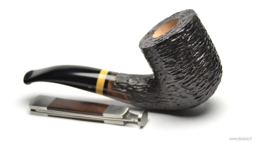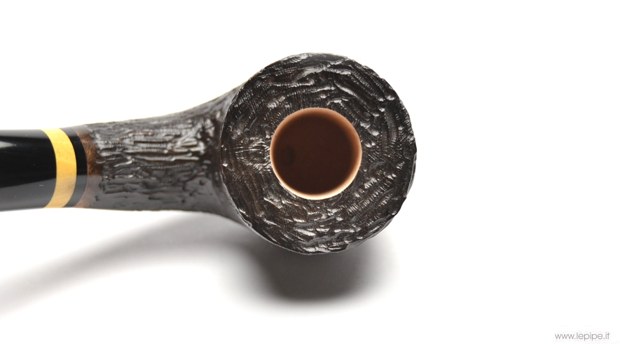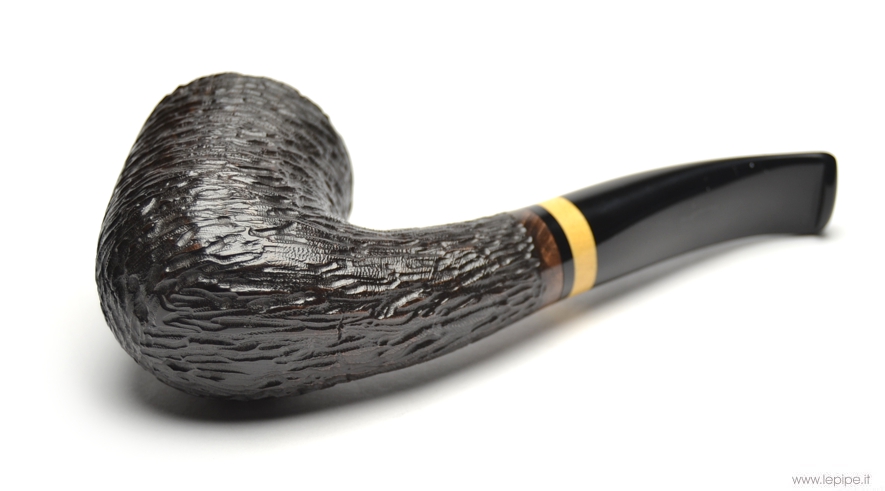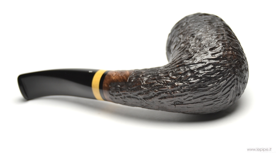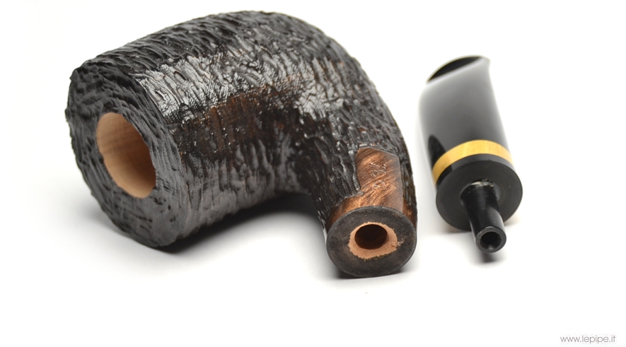 Pipa Wagner - n. 03  Bocchino in ebanite Senza filtro Rusticata Con altra elaborazione Diametro Interno: 19 mm. Diametro Esterno: 44 mm. Lunghezza: 141 mm. Altezza: 54 mm. Peso: 78 gr. Profondità: 0 mm.