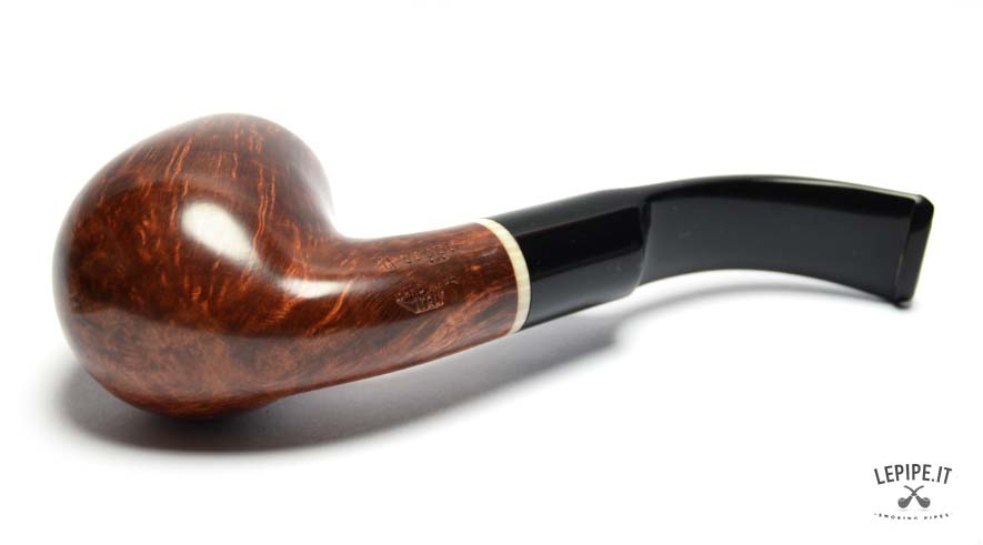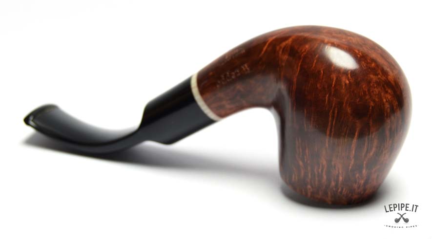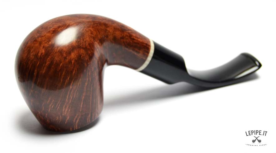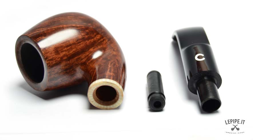 Il bocchino in metacrilato nero, lucido e ben sagomato, completa l’insieme con sobrietà, mantenendo l’attenzione sulla qualità della radica e sui dettagli costruttivi.